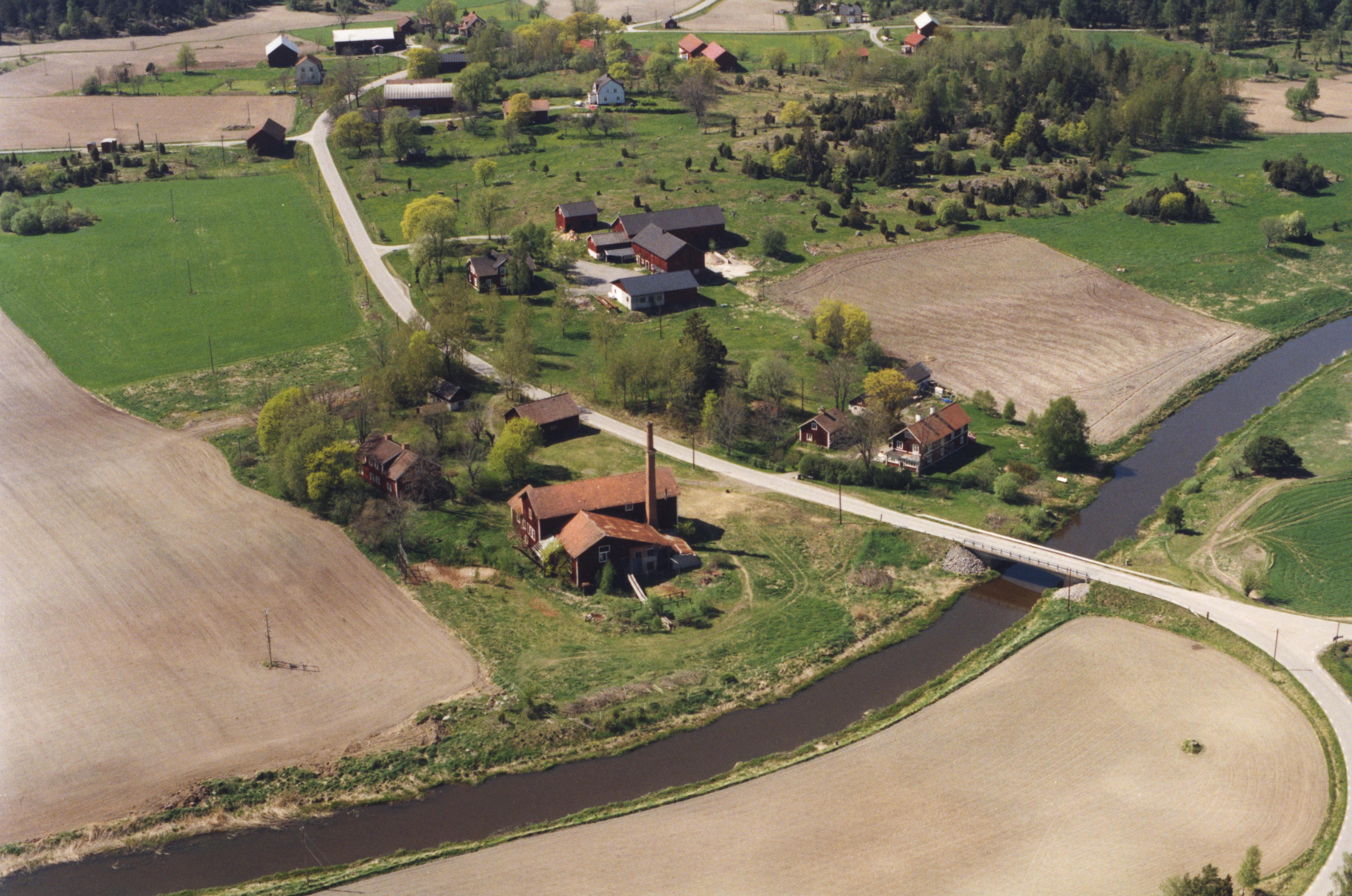 Beskrivning: Väskinge by vid Olandsån. Ån markerar gränsen mellan socknen Alunda (i bildens högra och övre del) och Ekeby (i bildens nedre och vänstra del). Över bildens mitt gravfält RAÄnr Alunda 522:1. Bilden är tagen mot (väderstreck): NV