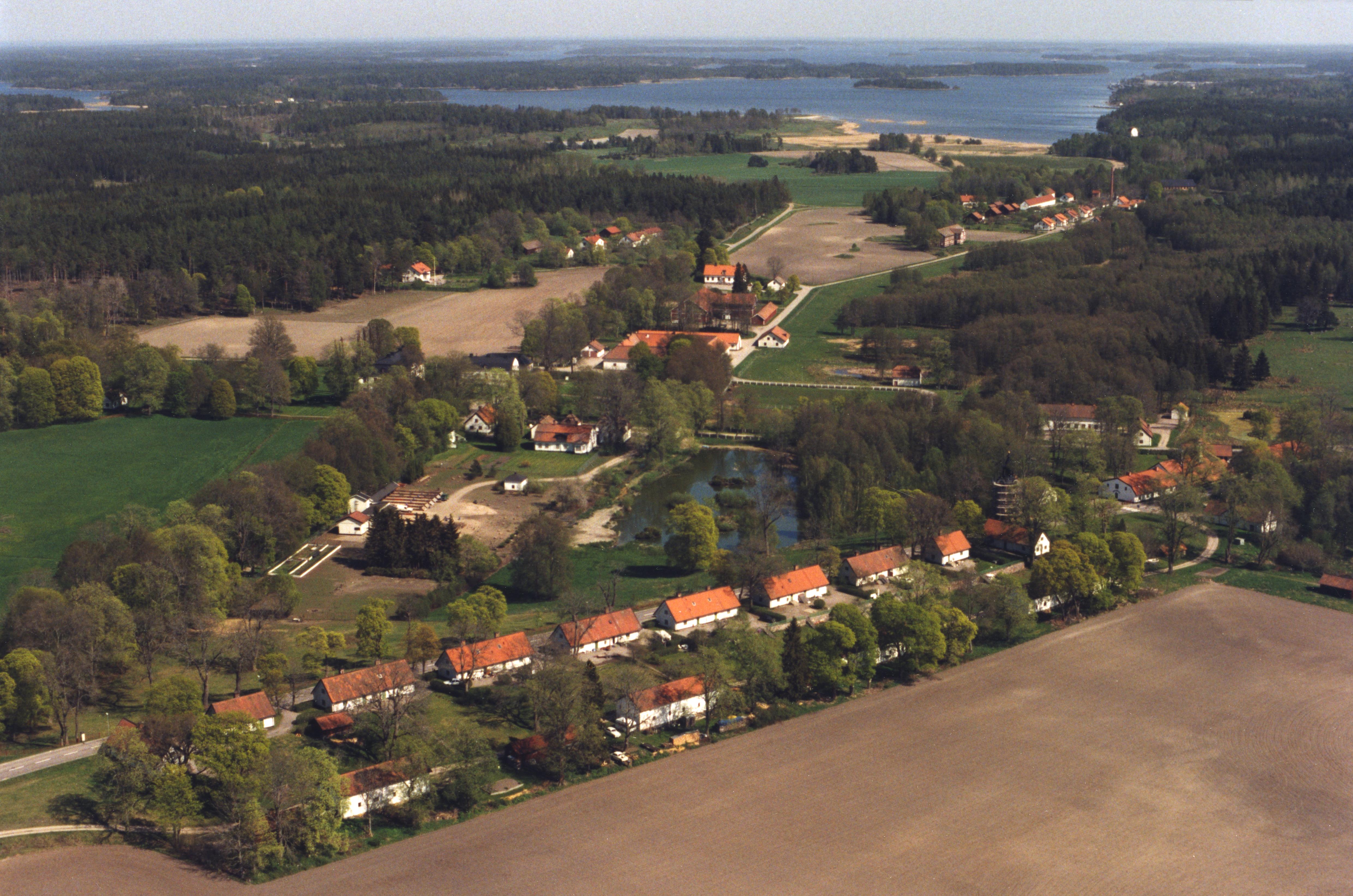 Beskrivning: Hargs bruk och hammarområde RAÄnr Harg 58:1. Hargs herrgård vid bildens mitt. Området Nerhammaren vid Hargsviken i bildens övre del. Bilden är tagen mot (väderstreck): Ö