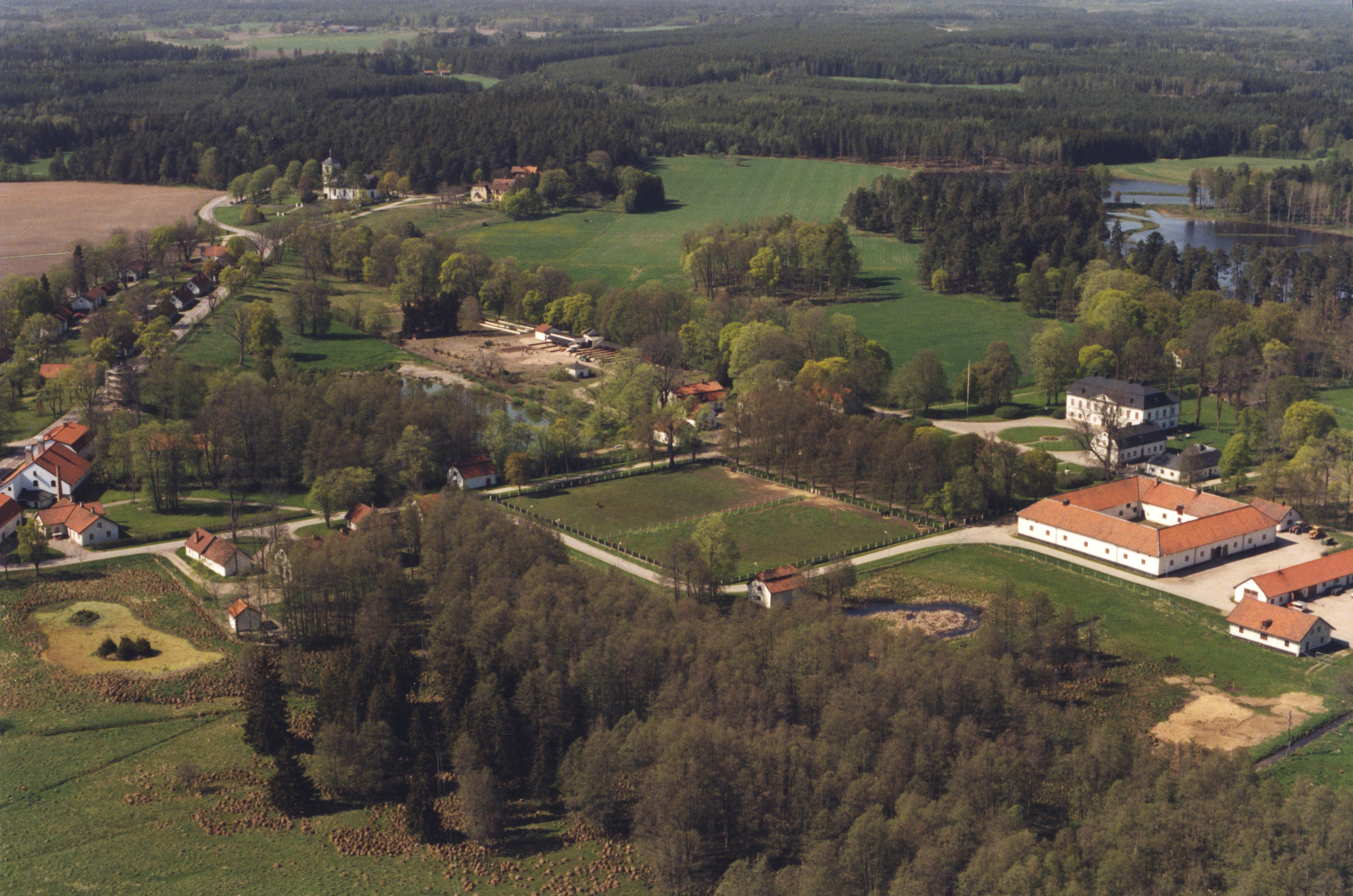 Beskrivning: Hargs bruk och hammarområde RAÄnr Harg 58:1. Hargs kyrka vid Hargs naturrreservat till vänster i bildens övre del. Till höger Hargs herrgård. Bilden är tagen mot (väderstreck): NNV
