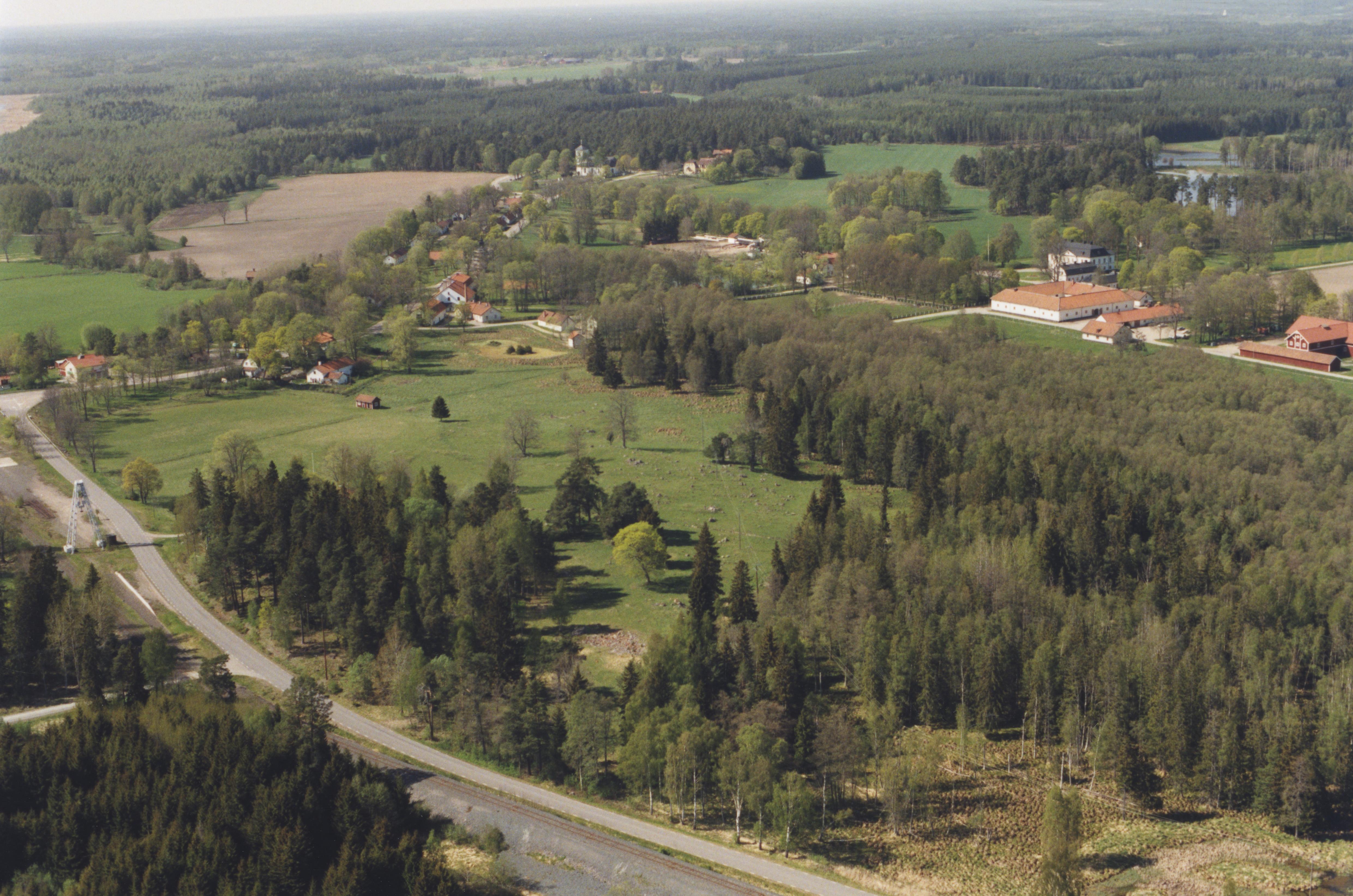 Beskrivning: Hargs bruk och hammarområde RAÄnr Harg 58:1. Hargs kyrka vid Hargs naturrreservat i bildens övre del. Uppe till höger Hargs herrgård. Bilden är tagen mot (väderstreck): NNV