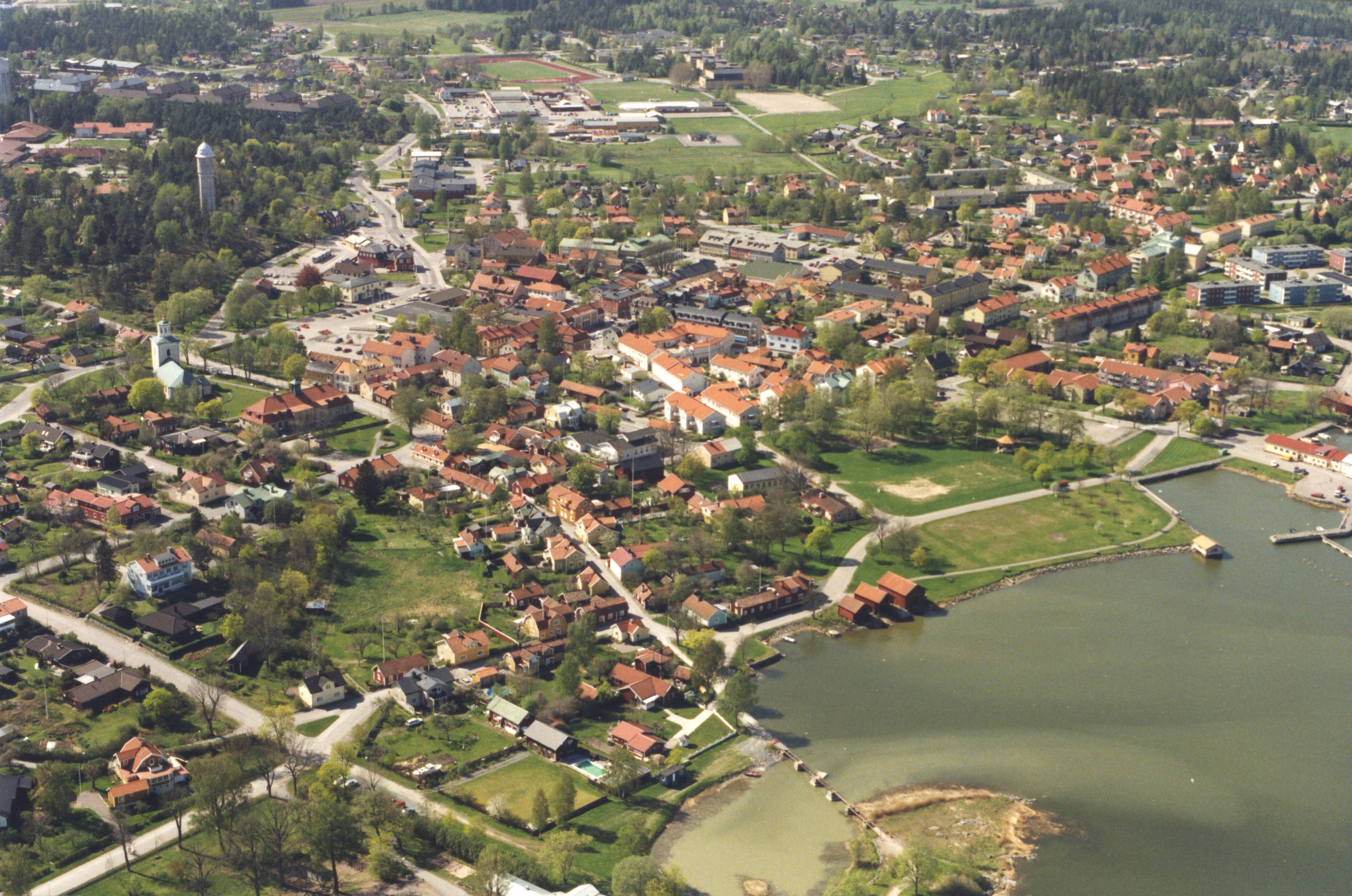 Beskrivning: Östhammars stad vid Östhammarsfjärden. Östhammars kyrka i stadslager RAÄnr Börstil 141:1 till vänster om bildens mitt. Bilden är tagen mot (väderstreck): VNV