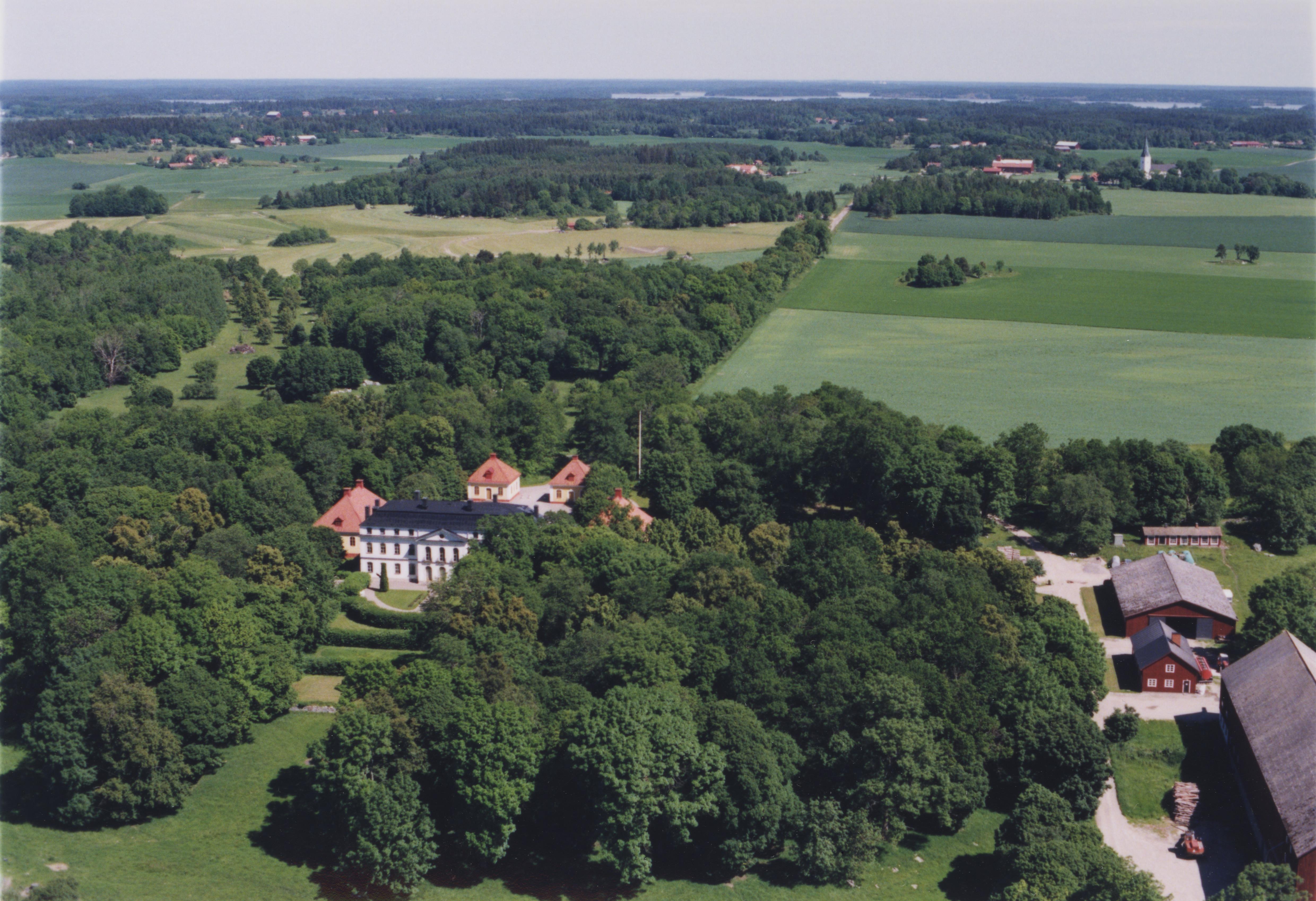 Beskrivning: Bergshammars herrgård RAÄnr Fogdö 109:1. Fogdö kyrka uppe till höger. Bilden är tagen mot (väderstreck): NNO
