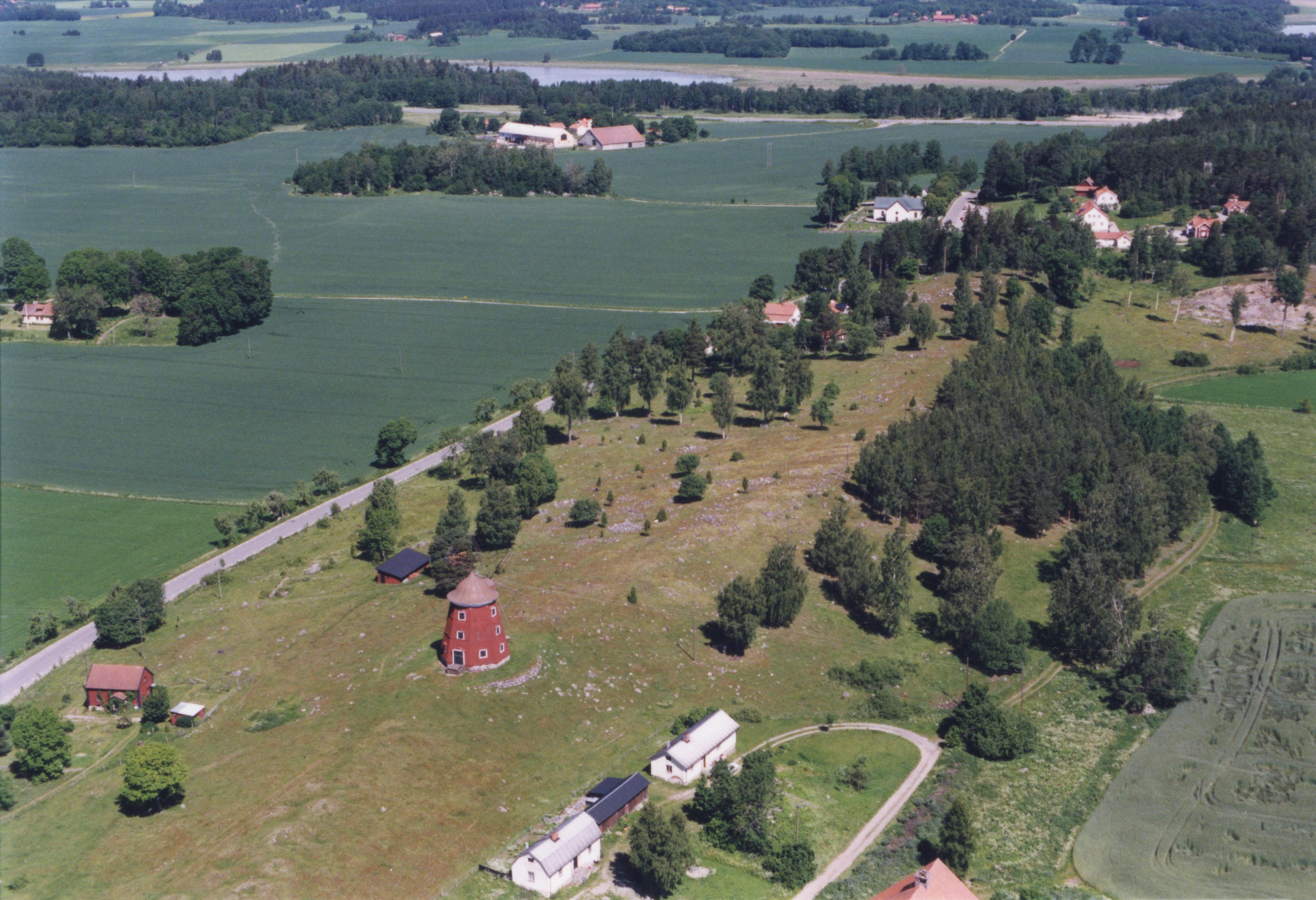 Beskrivning: Söderby herrgård med Söderby kvarn. Fornlämningsområde med hällristningar, boplats, gravfält, RAÄnr Barva 39:1, 40:1, 45:1, väderkvarn 95:1 m.fl. I bildens övre del Barva kyrka och Barva skola. Bilden är tagen mot (väderstreck): NV