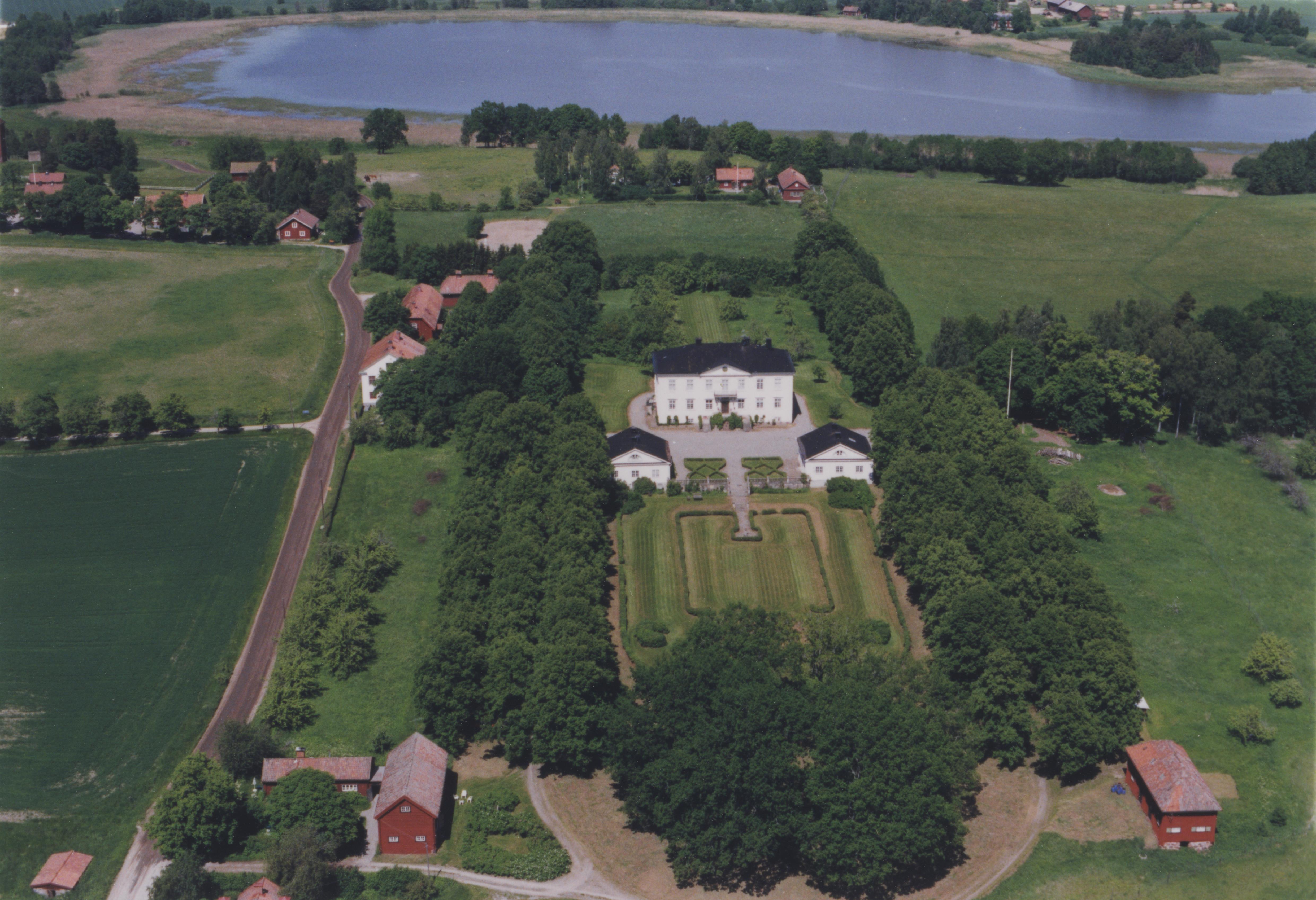 Beskrivning: Lindö herrgård. Vid herrgården minnesmärke RAÄnr Runtuna 69:1. I bildens övre del sjön Eknaren. Bilden är tagen mot (väderstreck): NNV
