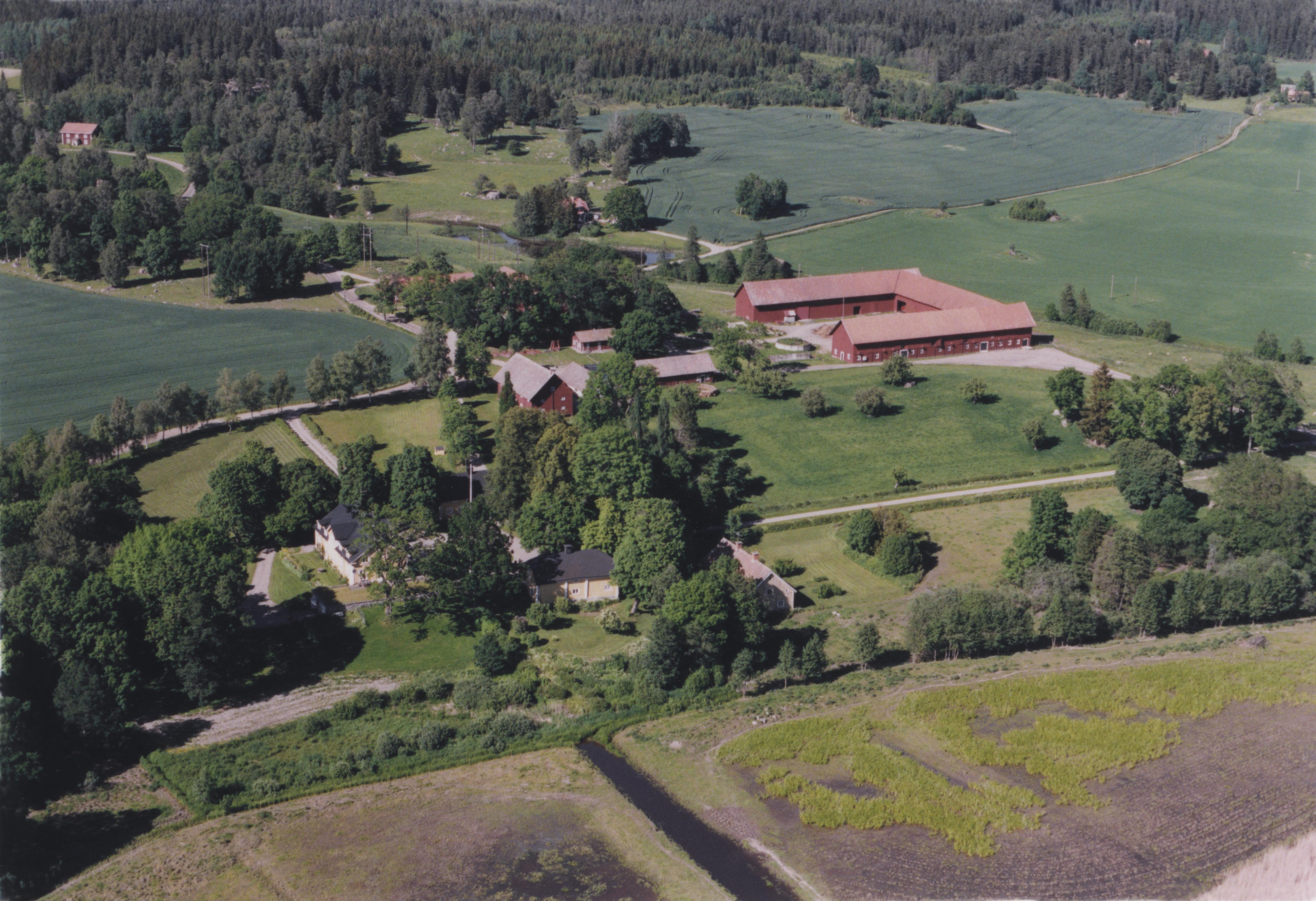 Beskrivning: Abbotnäs herrgård / säteri (äldre stavning Abbotsnäs) vid sjön Floden. Vid bildens mitt fyndplats (skafthålsyxa) RAÄnr Floda 183:1 och vägmärke RAÄnr Floda 226:1. Bilden är tagen mot (väderstreck): ONO