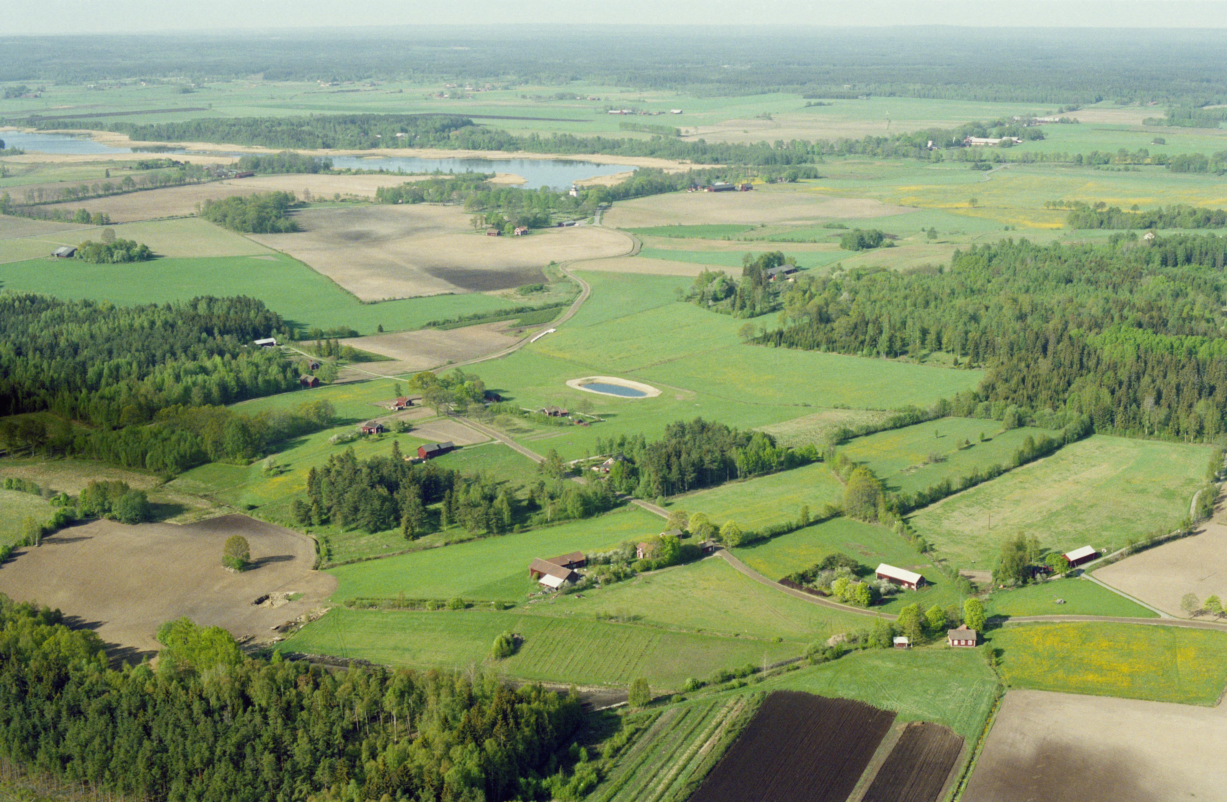 Beskrivning: Välahagen och Kärret. Bytomt Viby 360 vid Nordankyrka till höger om bildens mitt. Uppe till höger Viby kyrka vid Vibysjön. Bilden är tagen mot (väderstreck): SV