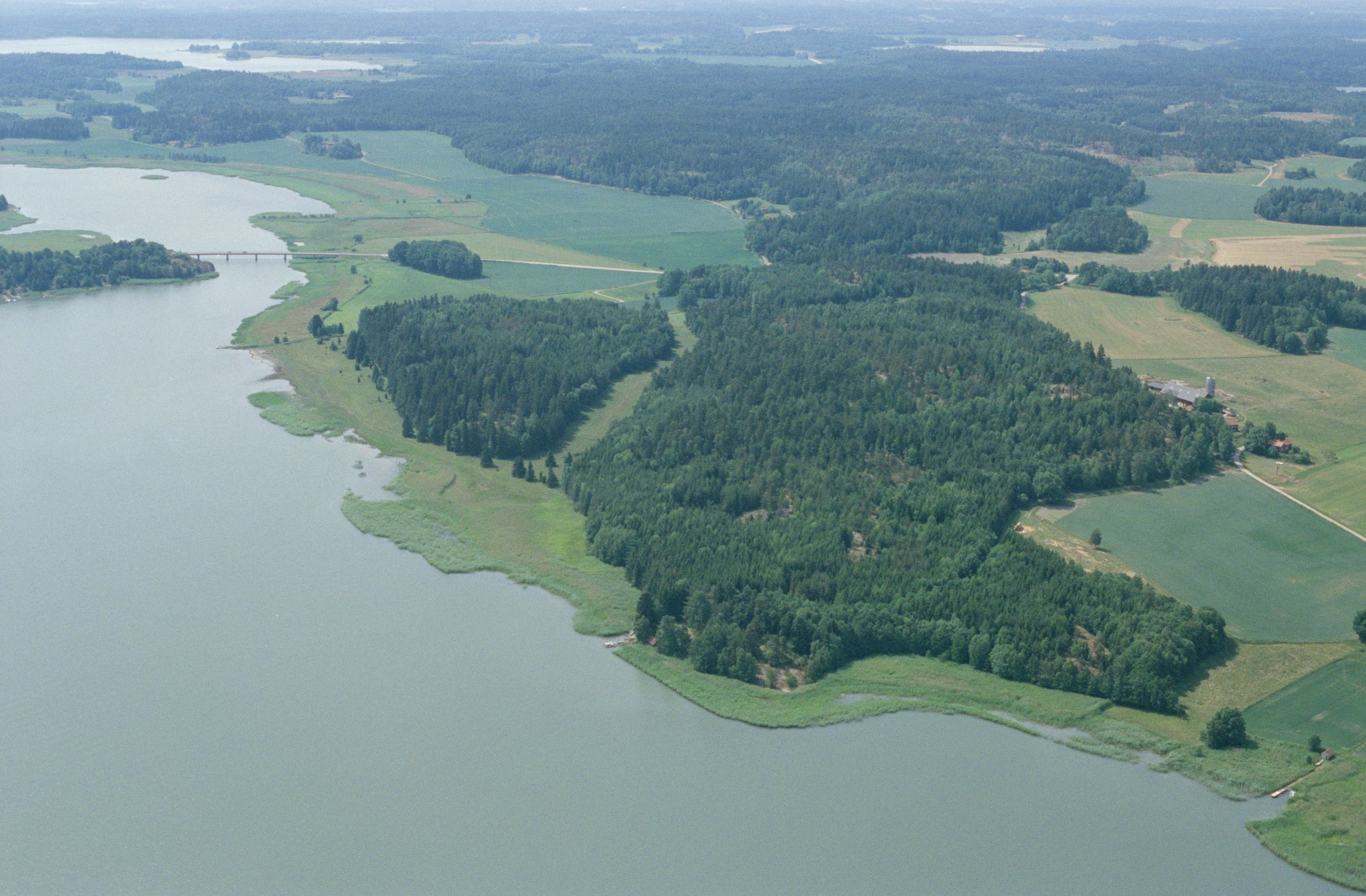Beskrivning: Norafjärden och Pålsundet på gränsen mellan socknen Hölö och Mörkö. Uppe till vänster bron över till Kasholmen i Mörkö socken. Vid bron skans RAÄnr Hölö 169:1. Till höger Vinterhälla och Sund. Bilden är tagen mot (väderstreck): SSV