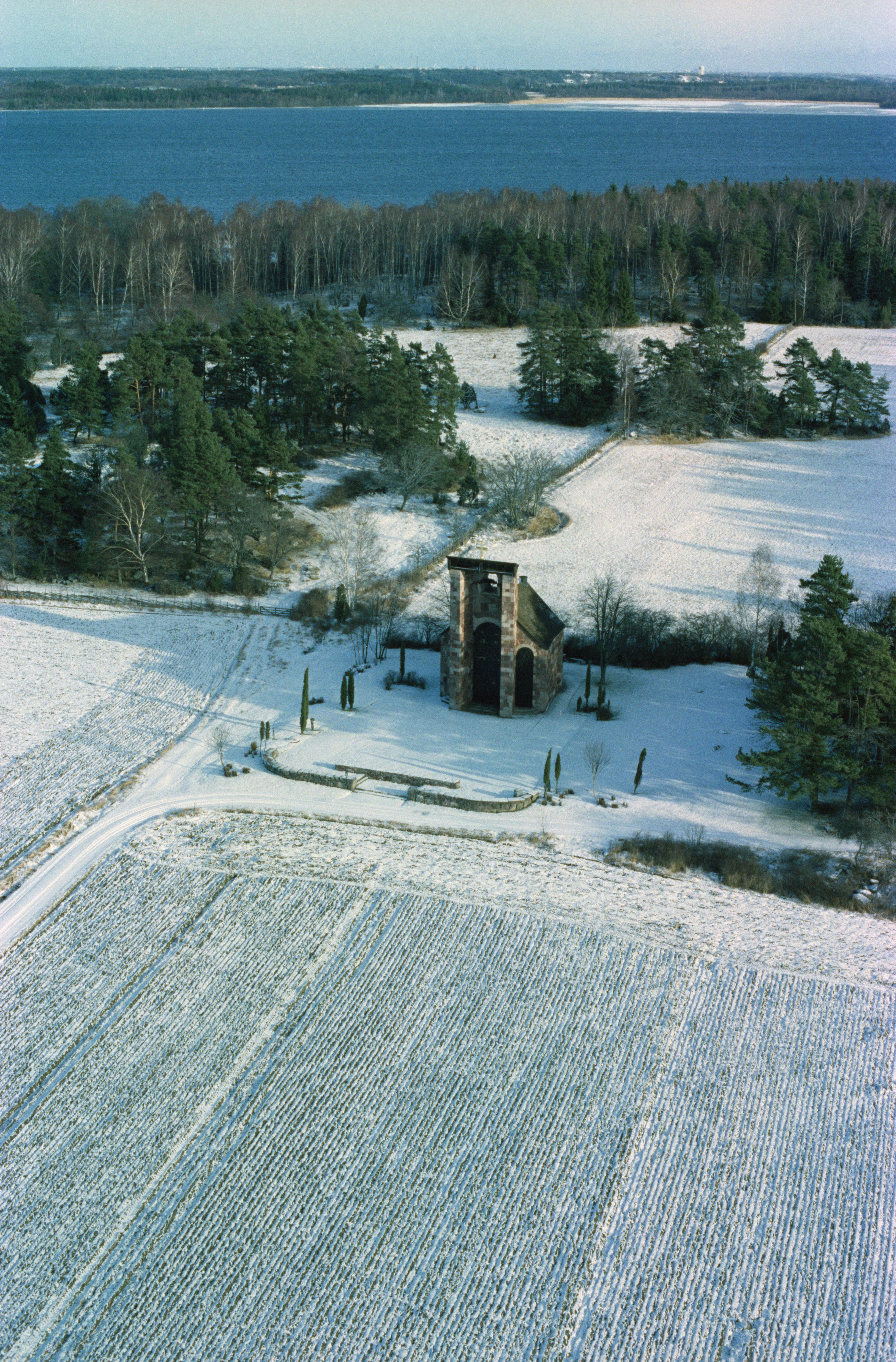 Beskrivning: Björkö kapell (Ansgarskapellet) vid Björkö by och Birka på ön Björkö i Mälaren. Bilden är tagen mot (väderstreck): ONO