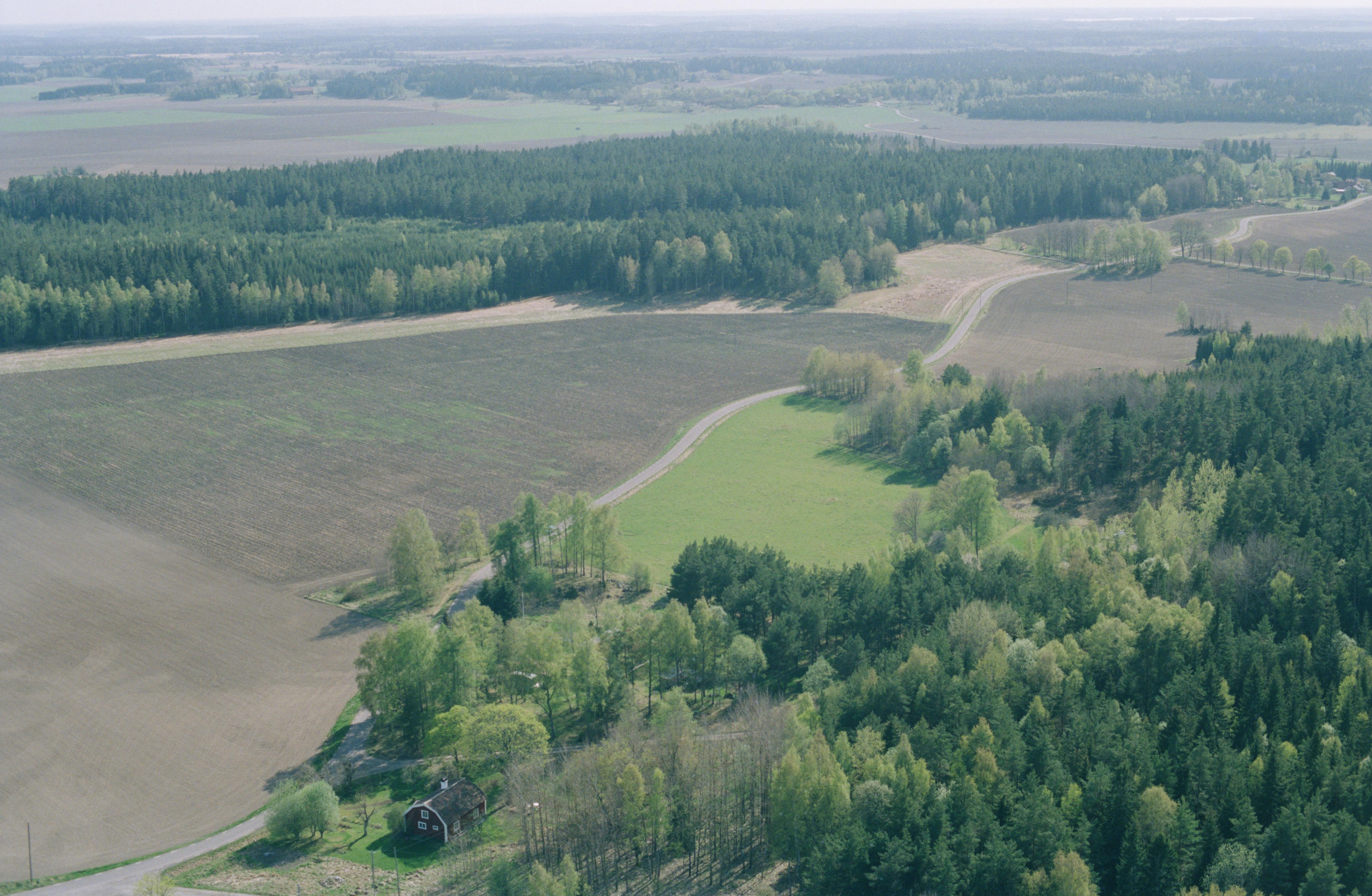 Beskrivning: Fornlämningsområde i västra delen av Grillby. Vägen Ekorrstigen vid Solstugan mot Grillby gård. Nere till höger flera hällristningar RAÄnr Villberga 89:1, 100:1-2, 117:1, m.fl. I bildens övre del Boglösa socken. Bilden är tagen mot (väderstreck): SV