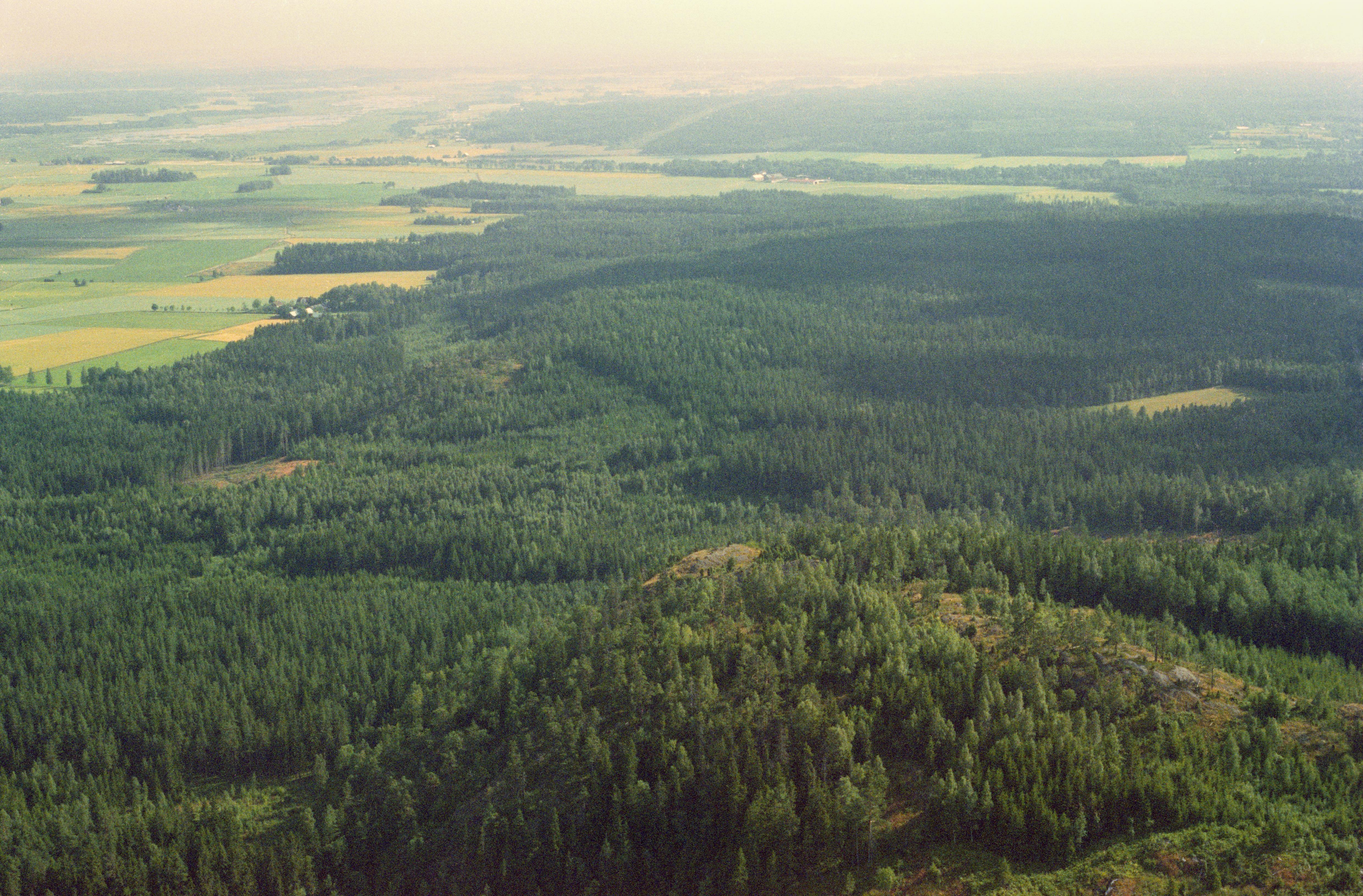 Beskrivning: Fornborg Ullavi klint RAÄnr Kil 43:1 vid bildens mitt. Till vänster vid bildens mitt fornborg RAÄnr Kil 47:1 och Algutstorp. Bilden är tagen mot (väderstreck): SO