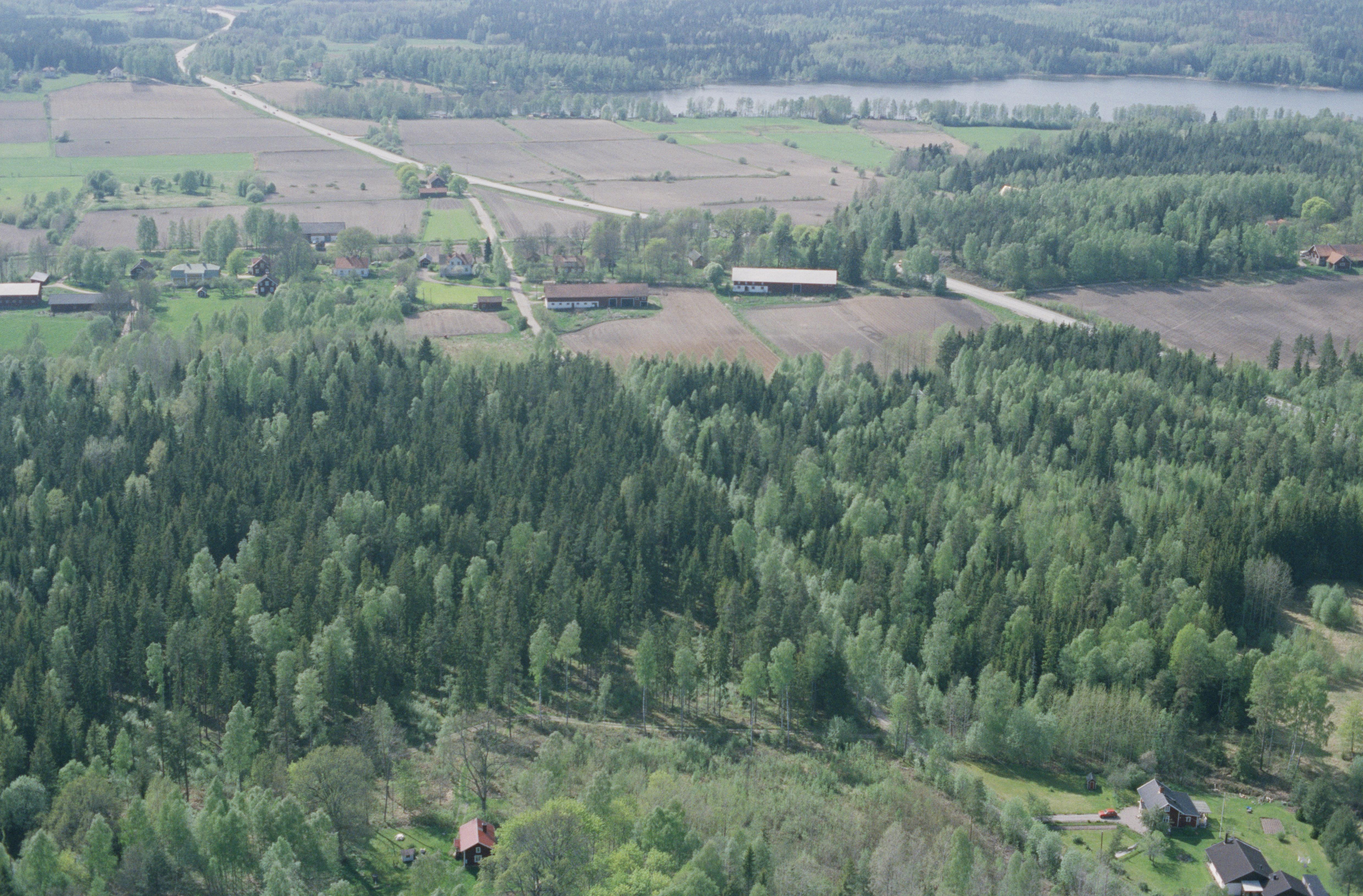 Beskrivning: Beskrivning: Gamla och nya vägen vid Racksätter. Vid bildens mitt källa RAÄnr Götlunda 67:1. Uppe till höger Högsjön. Bilden är tagen mot (väderstreck): VSV Fotosyfte: Flygbildsdokumentation