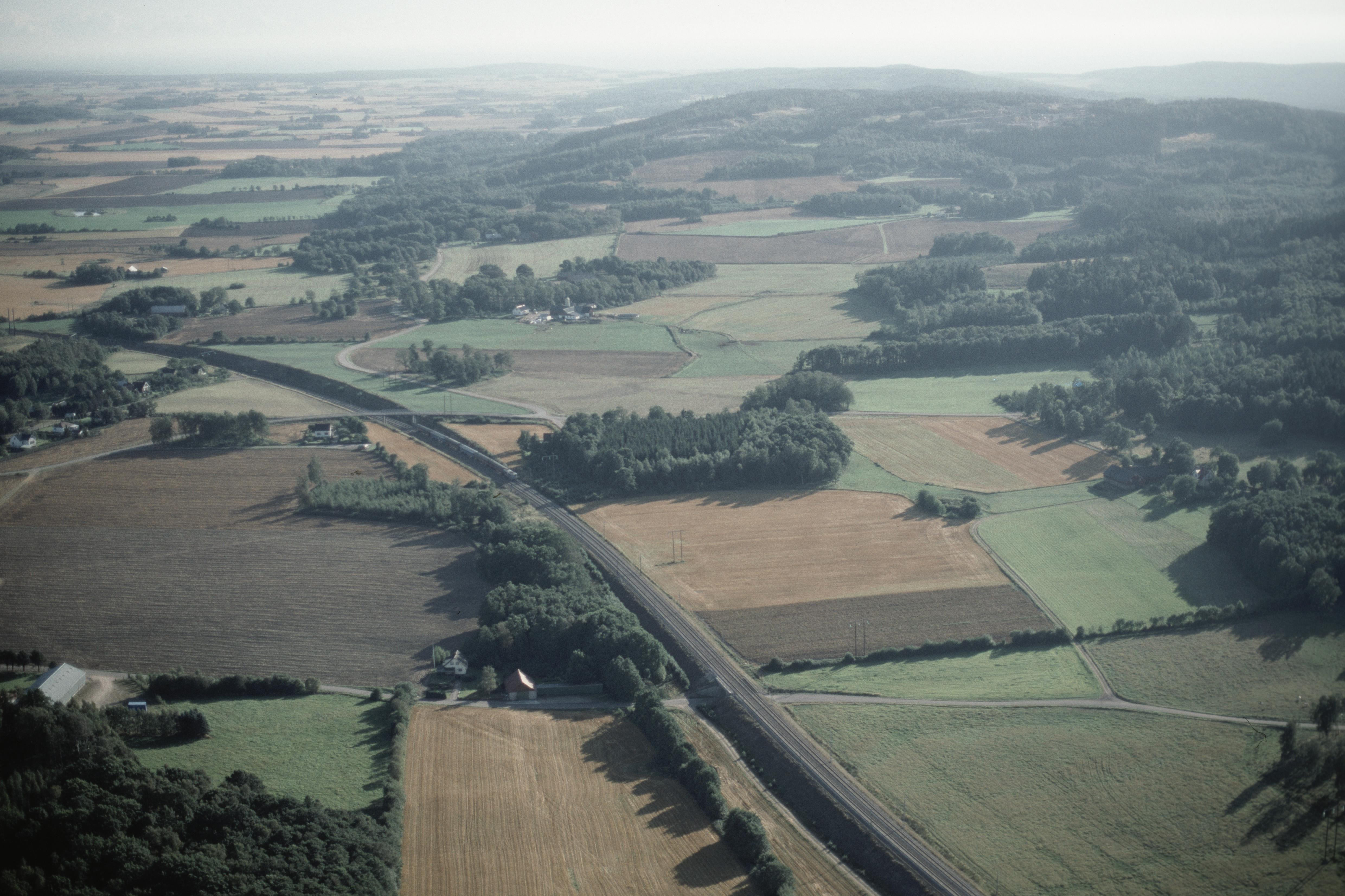 Beskrivning: Vid Hörsås - Lilla Berg - Noregård - Öringe, innan bygge av väg E6 mellan Laholm och Slöinge. Till höger boplats RAÄnr Getinge 82:1-2. Bilden är tagen mot (väderstreck): SSV