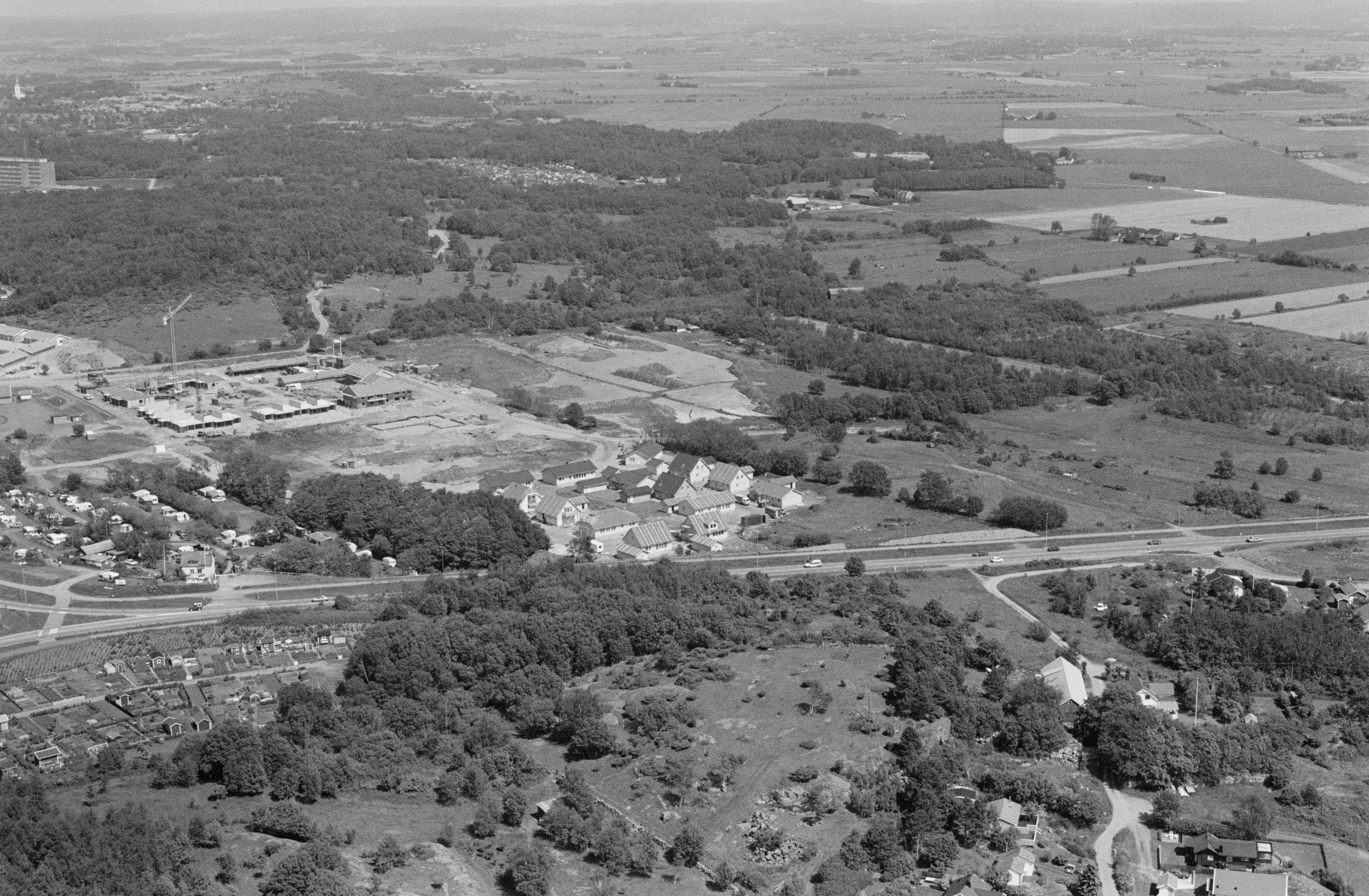 Beskrivning: Arkeologisk undersökning och grävning av boplats RAÄnr Varberg 102:1 norrost om Apelviken. I bildens övre del till vänster Träslövs kyrka i Träslövs socken. Bilden är tagen mot (väderstreck): Ö