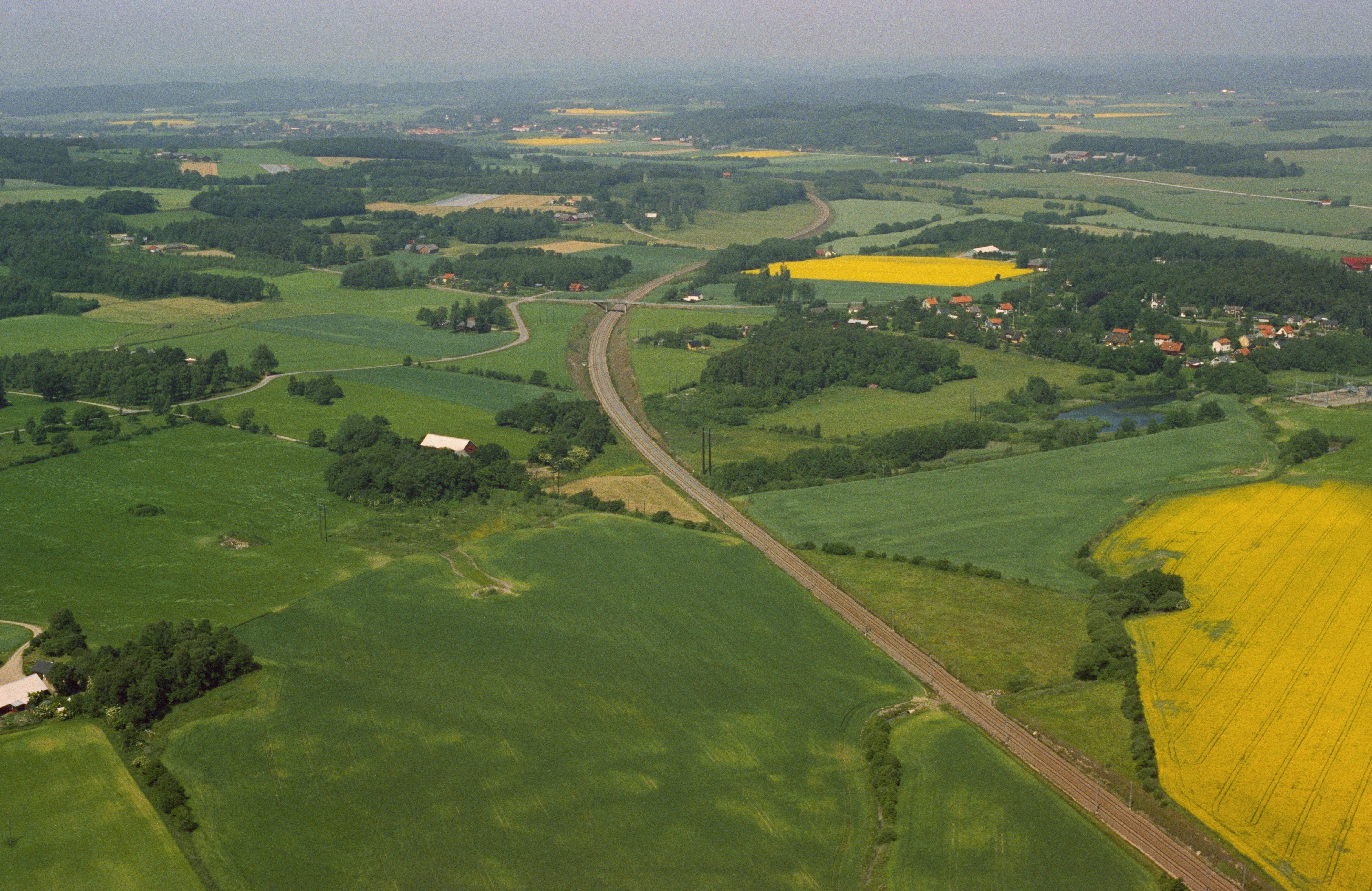 Beskrivning: Vid gränsen mellan socknen Getinge och Rävinge. Områdena Hörsås - Lilla Berg - Öringe, innan bygge av väg E6 mellan Laholm och Slöinge. Högar och fossila åkrar, RAÄnr Getinge 26:1 m.fl. Bilden är tagen mot (väderstreck): NV