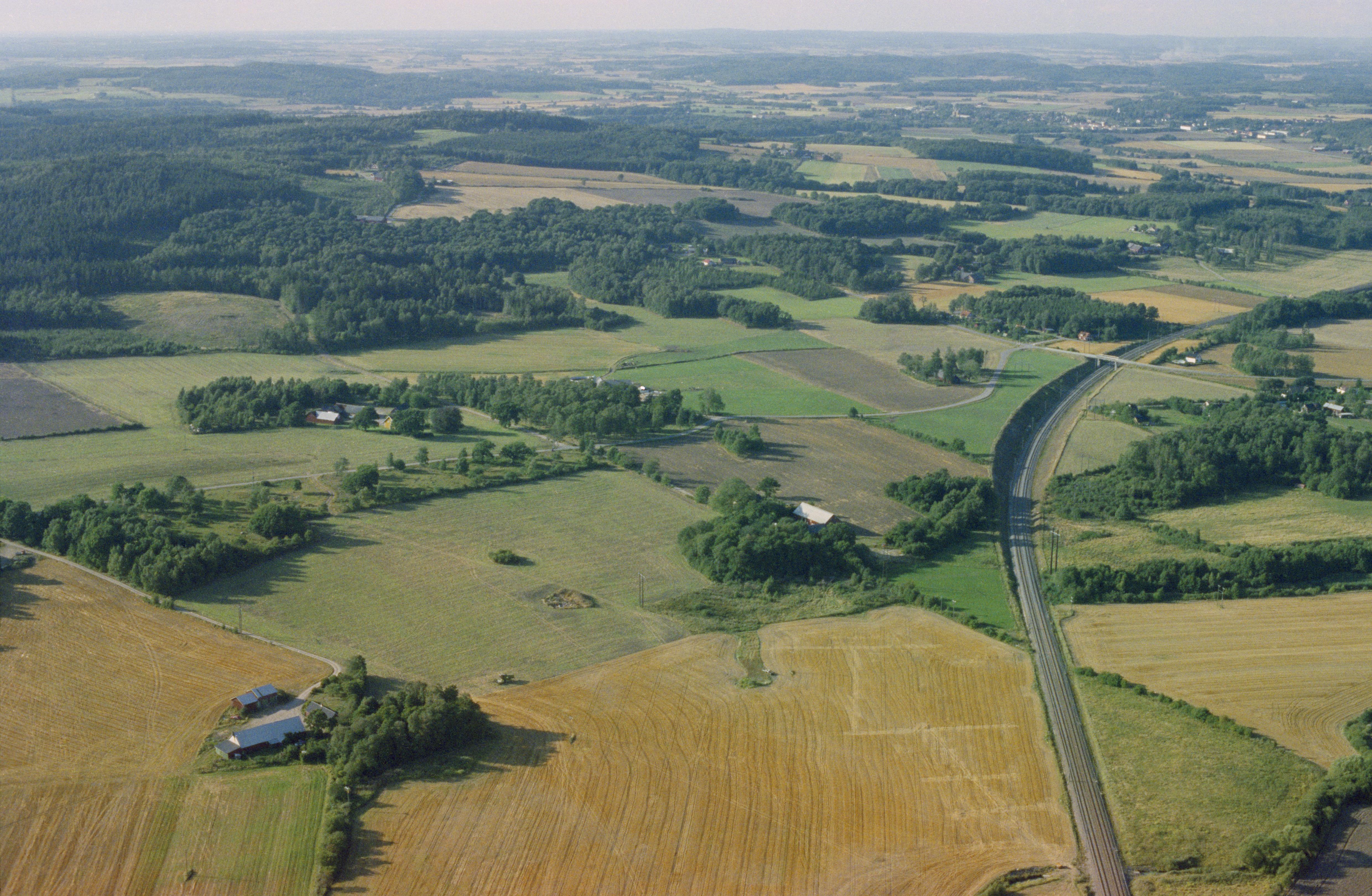 Beskrivning: Områdena Hörsås - Lilla Berg - Öringe, innan bygge av väg E6 mellan Laholm och Slöinge. Högar och fossila åkrar, RAÄnr Getinge 26:1 m.fl. Bilden är tagen mot (väderstreck): NNV