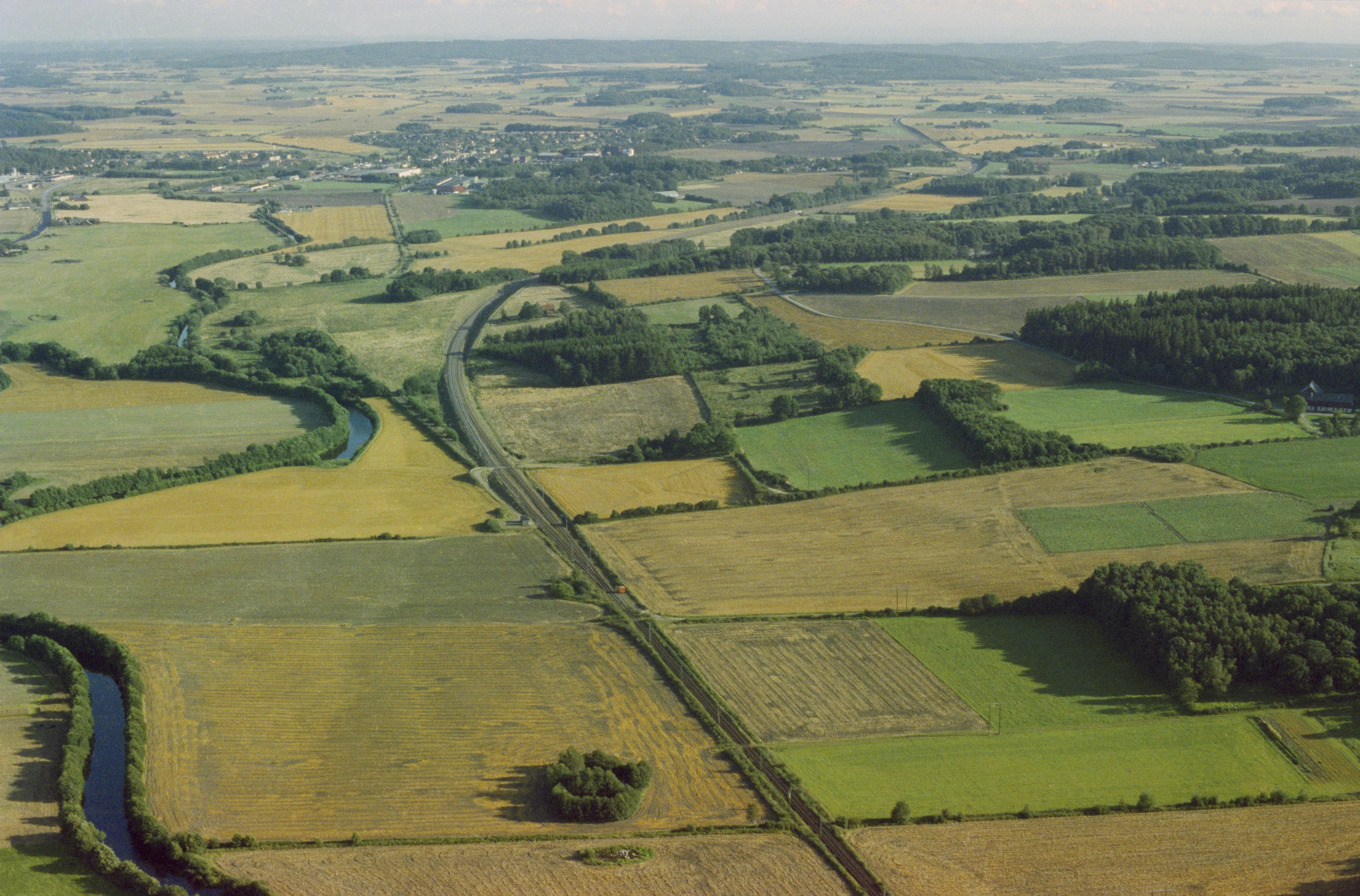 Beskrivning: Suseåns dalgång söder om tätorten och kyrkbyn Stenstorp, innan bygge av väg E6 mellan Laholm och Slöinge. Boplats RAÄnr Slöinge 109:1 vid bildens mitt. Getinge socken i bildens övre del. Stenstorps kyrka och kyrkby i bildens övre del. Bilden är tagen mot (väderstreck): SSO