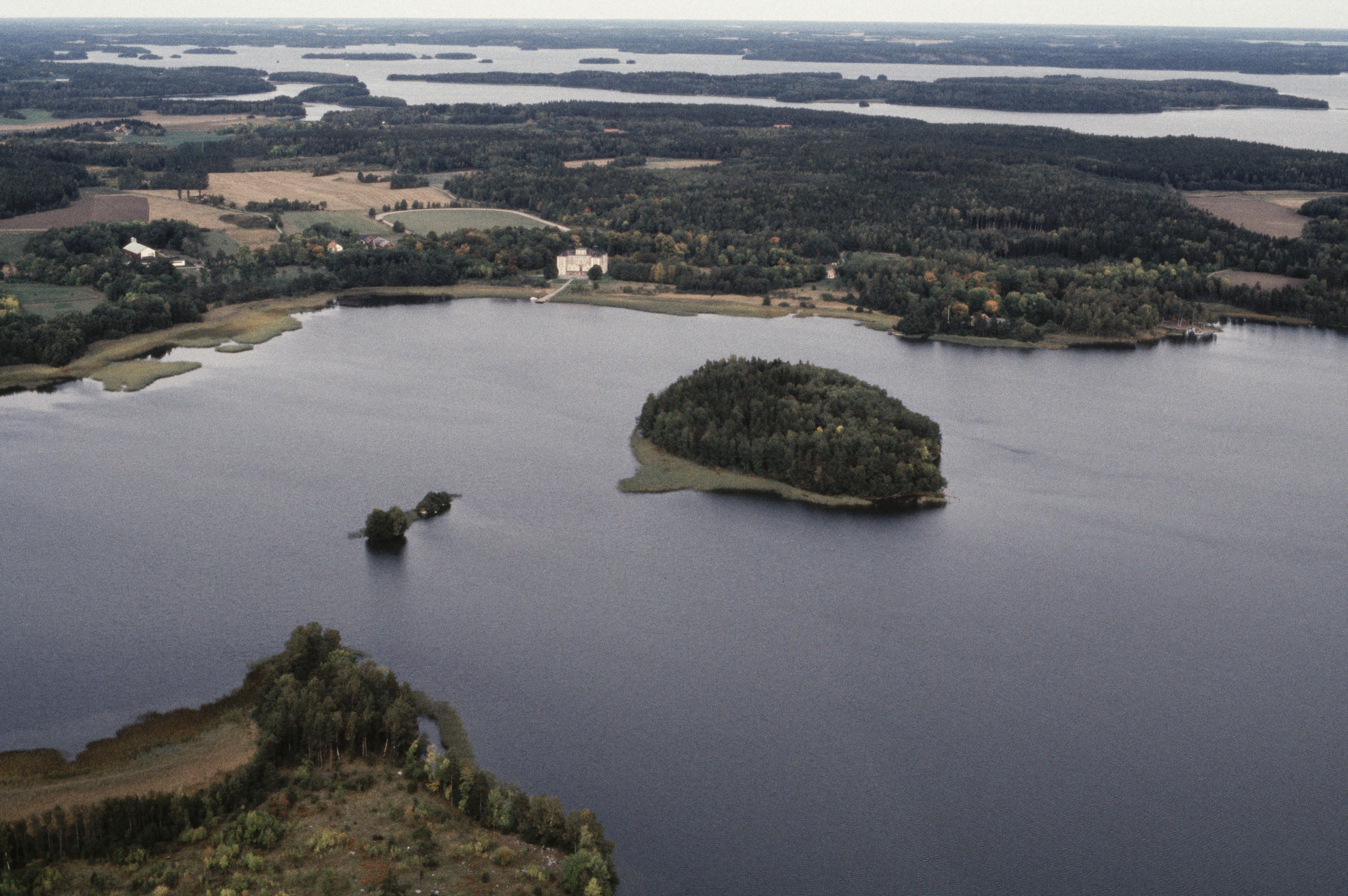 Beskrivning: Mälsåkers slott RAÄnr Ytterselö 122:1 på Selaön vid Prästfjärden i Mälaren. Koholmen nere till vänster, Gåsholmen vid bildens mitt. Bilden är tagen mot (väderstreck): N