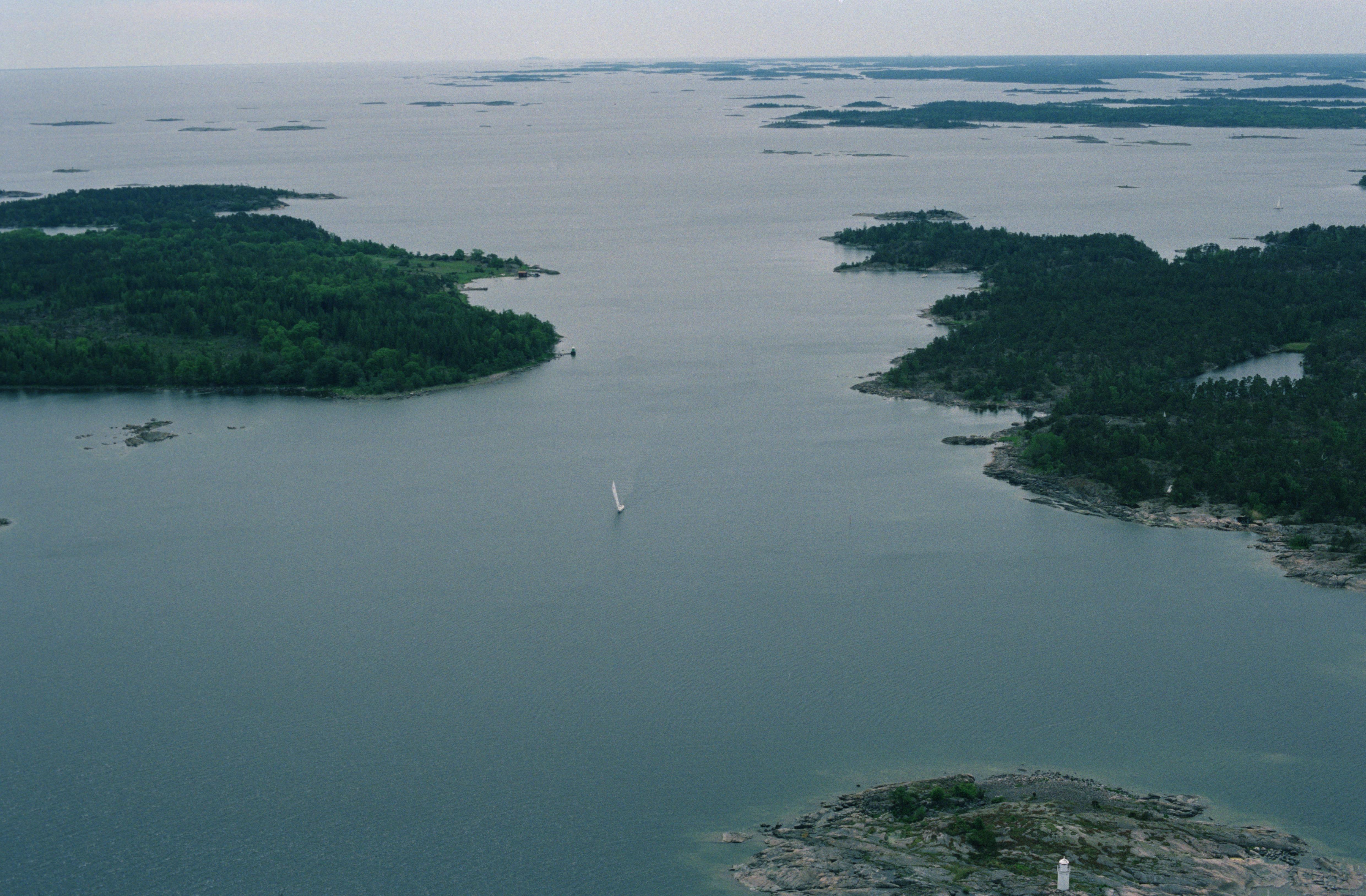 Beskrivning: Idöfjärden i Tjusts skärgård. Ön Idö till vänster med minnesmärke RAÄnr Västrum 195:1. Till höger ön Krokö. I bildens nedre del Idösunds fyrplats. Bilden är tagen mot (väderstreck): S