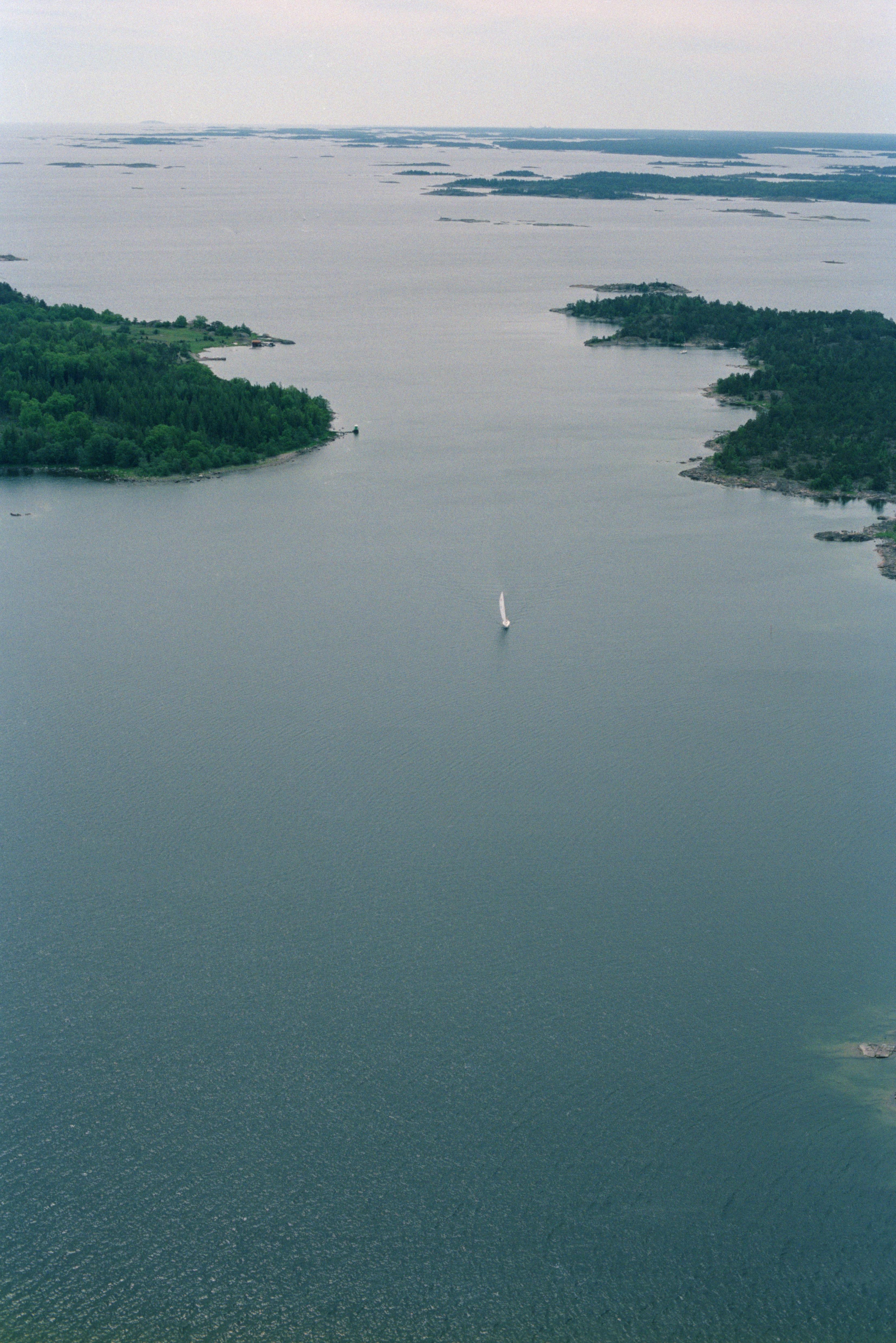 Beskrivning: Idöfjärden i Tjusts skärgård. Ön Idö till vänster med minnesmärke RAÄnr Västrum 195:1. Till höger ön Krokö. Bilden är tagen mot (väderstreck): S