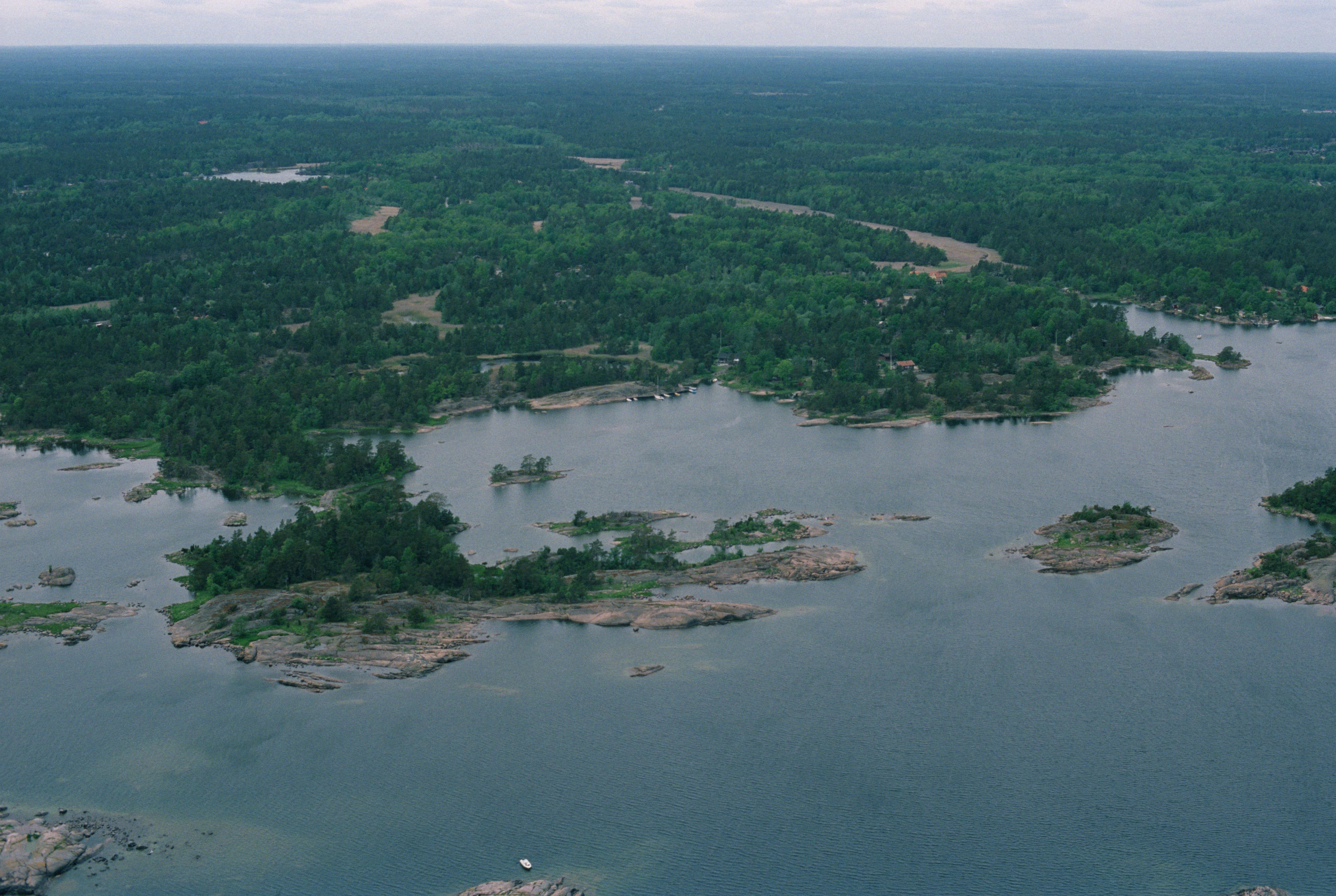 Beskrivning: Södra hamnen, Stångehamns Ö vid gränsen mellan socknen Döderhult och Oskarshamn (i bildens övre del). Bilden är tagen mot (väderstreck): V