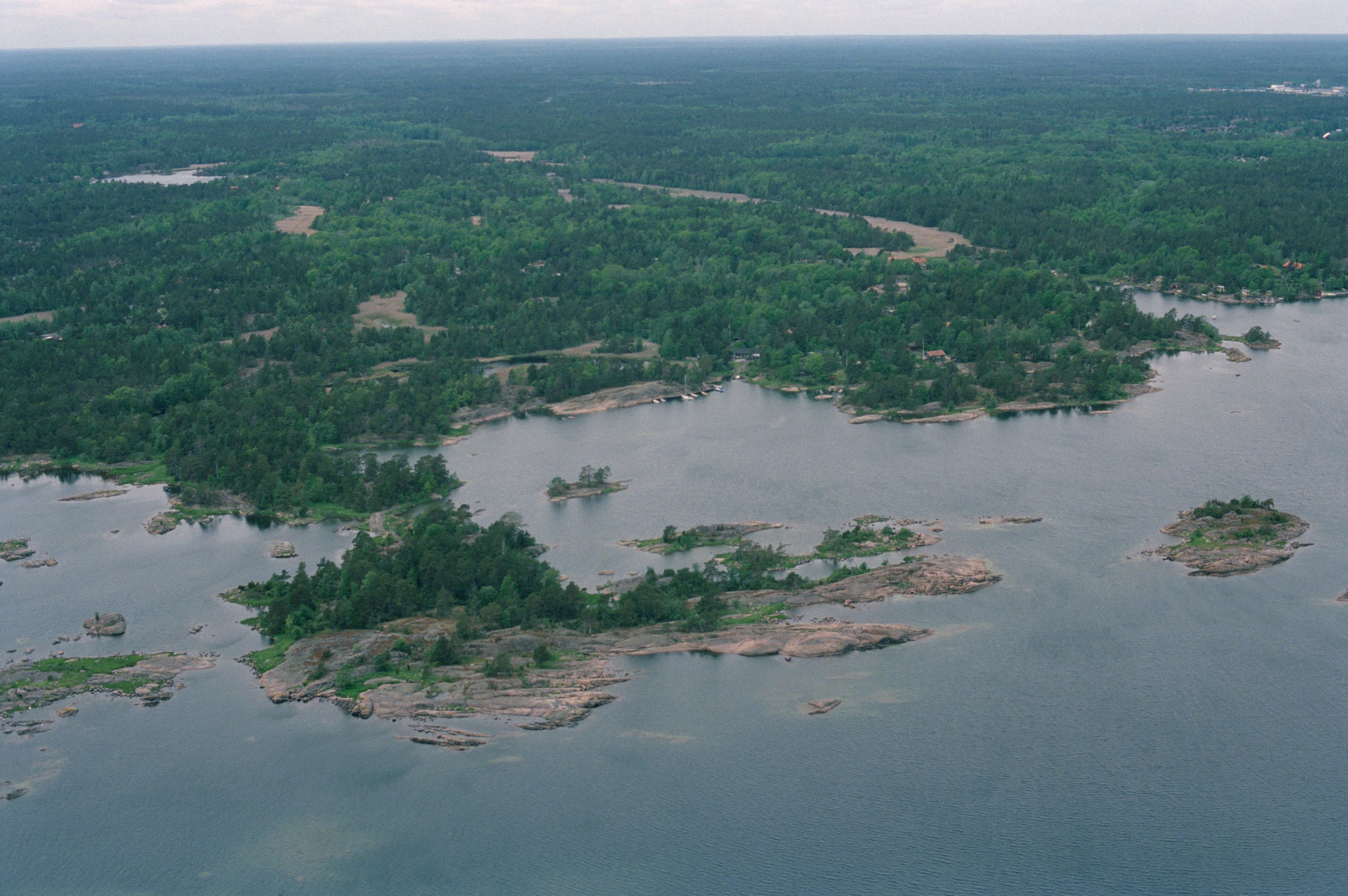Beskrivning: Södra hamnen, Stångehamns Ö vid gränsen mellan socknen Döderhult och Oskarshamn (i bildens övre del). Bilden är tagen mot (väderstreck): V