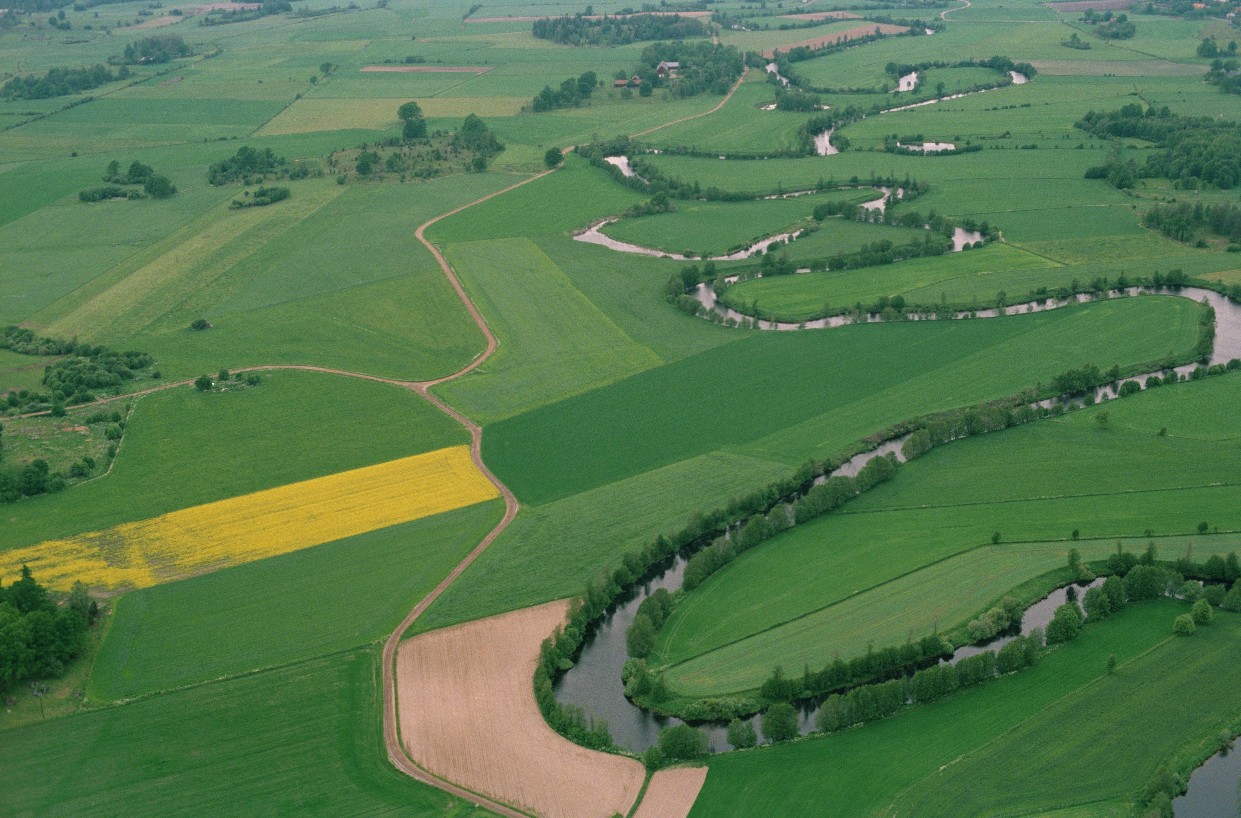 Beskrivning: Meanderslingor i Emån vid Mörlunda. Tveta socken i bildens övre del till vänster. Bilden är tagen mot (väderstreck): NV