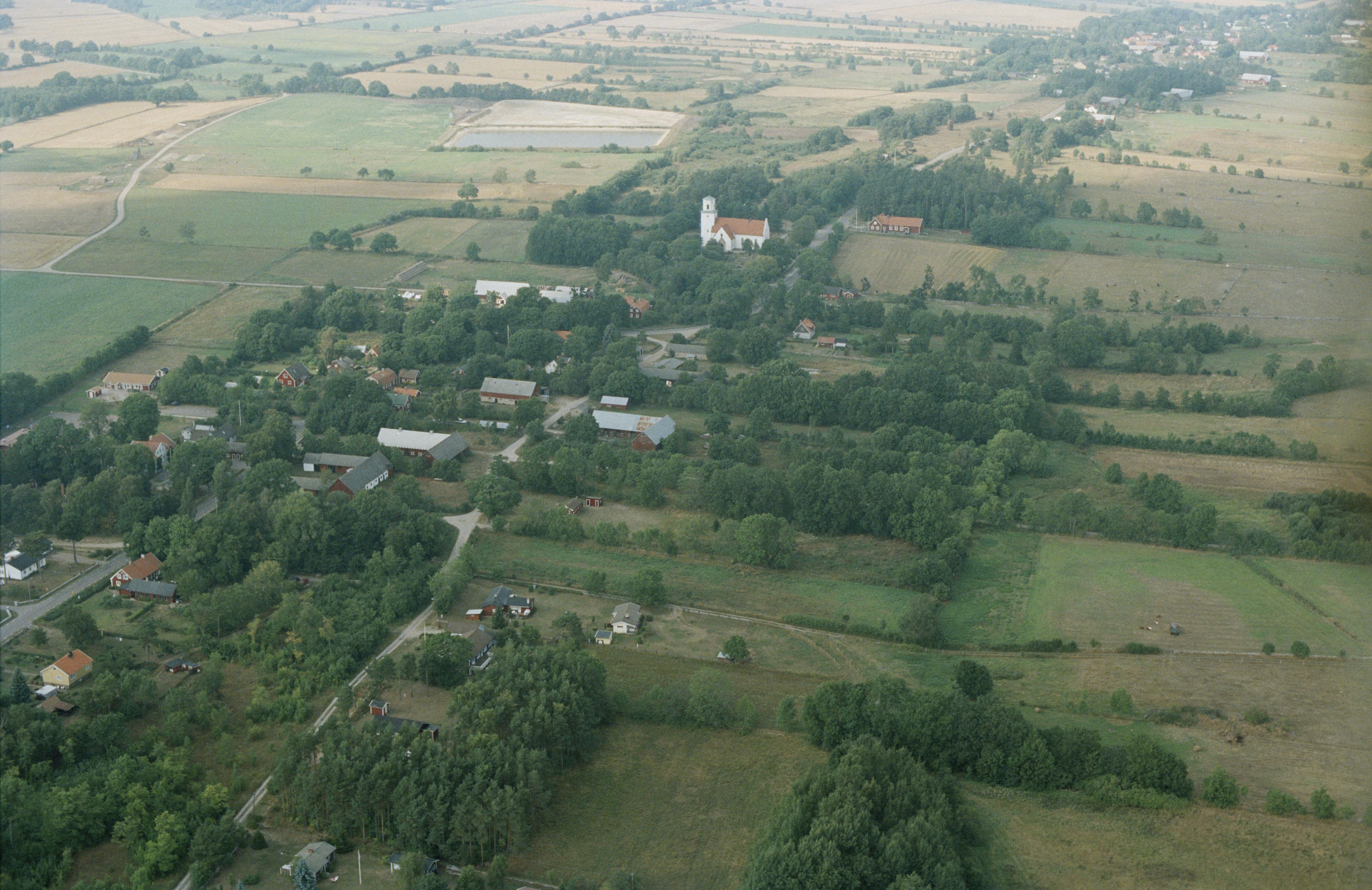Beskrivning: Gärdslösa kyrka i bildens övre del. Bilden är tagen mot (väderstreck): N