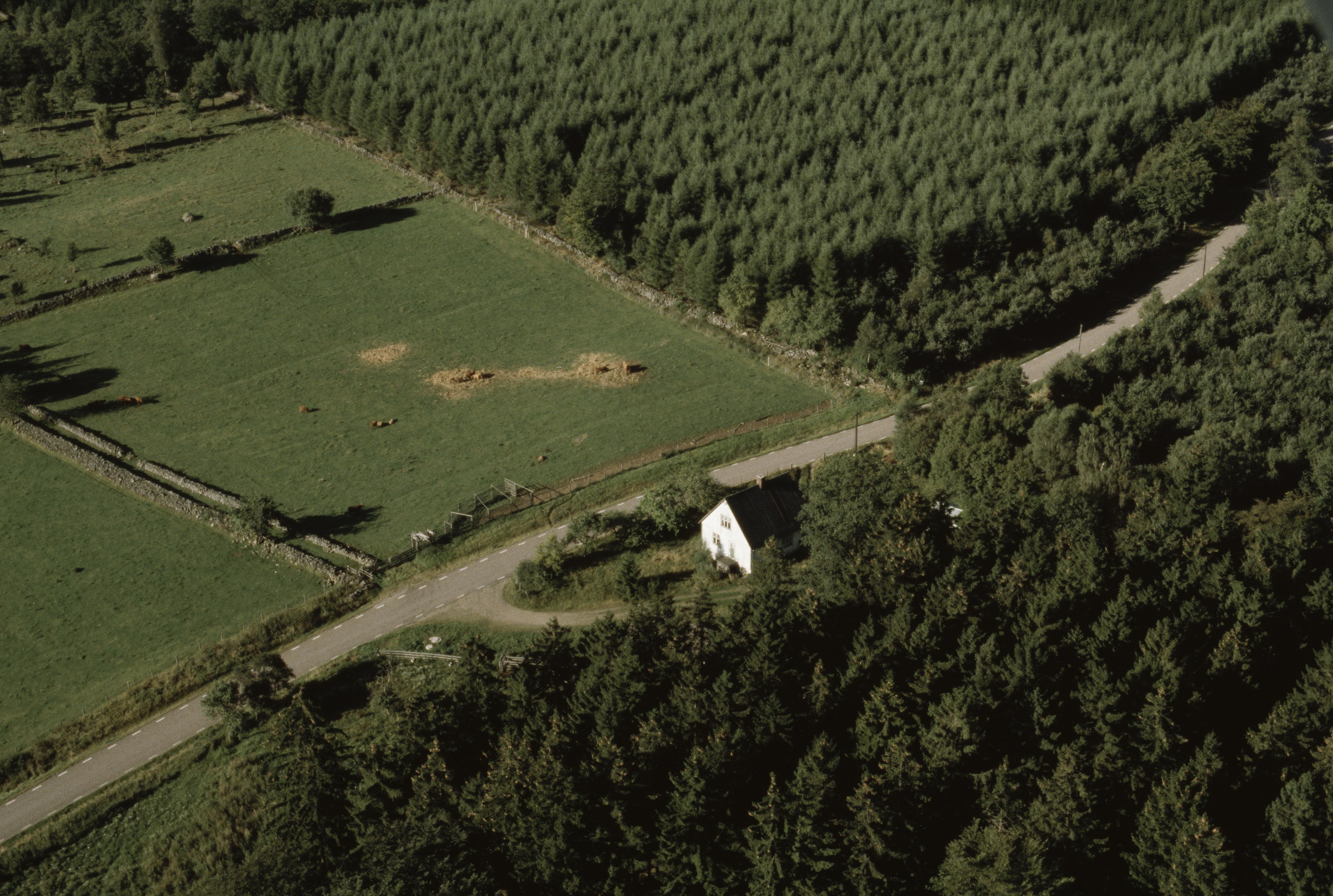Beskrivning: Grindhus gård med omgivande småbrutet odlingslandskap på Söderåsens sluttning. Vid gården fossil åker RAÄnr Konga 240. I bildens nedre del Traneröds mosse. Bilden är tagen mot (väderstreck): SV