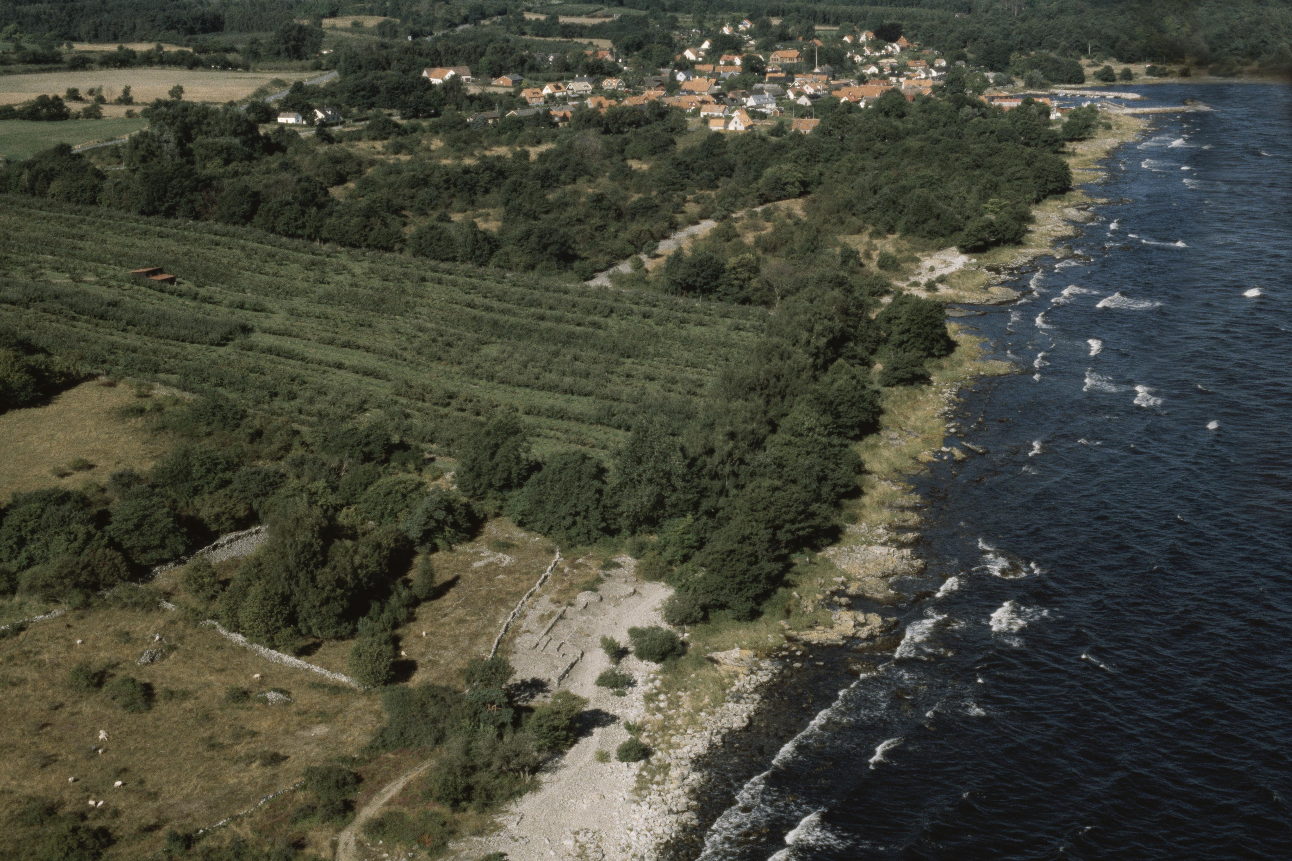 Beskrivning: Byggnadslämningar (ej formlämningar) på stranden sydost om Baskemölla fiskeläge. Bilden är tagen mot (väderstreck): NV