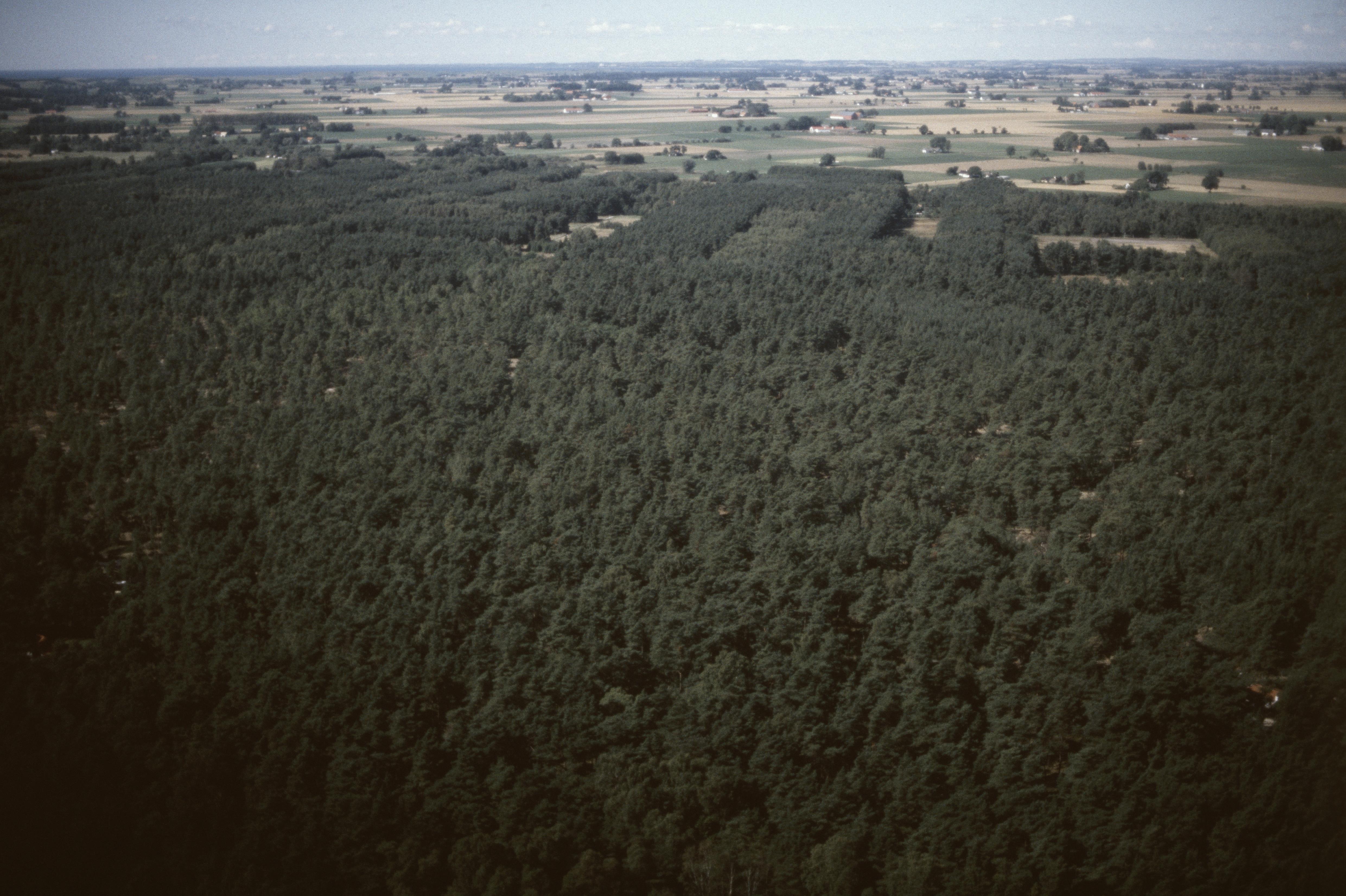 Beskrivning: Järahusen i skogsområdet i Sandhammarens naturreservat. Boplats RAÄnr Löderup 21:1 uppe till vänster. Hagestadborg och Hagestad m.fl. i bildens övre del. Bilden är tagen mot (väderstreck): VNV