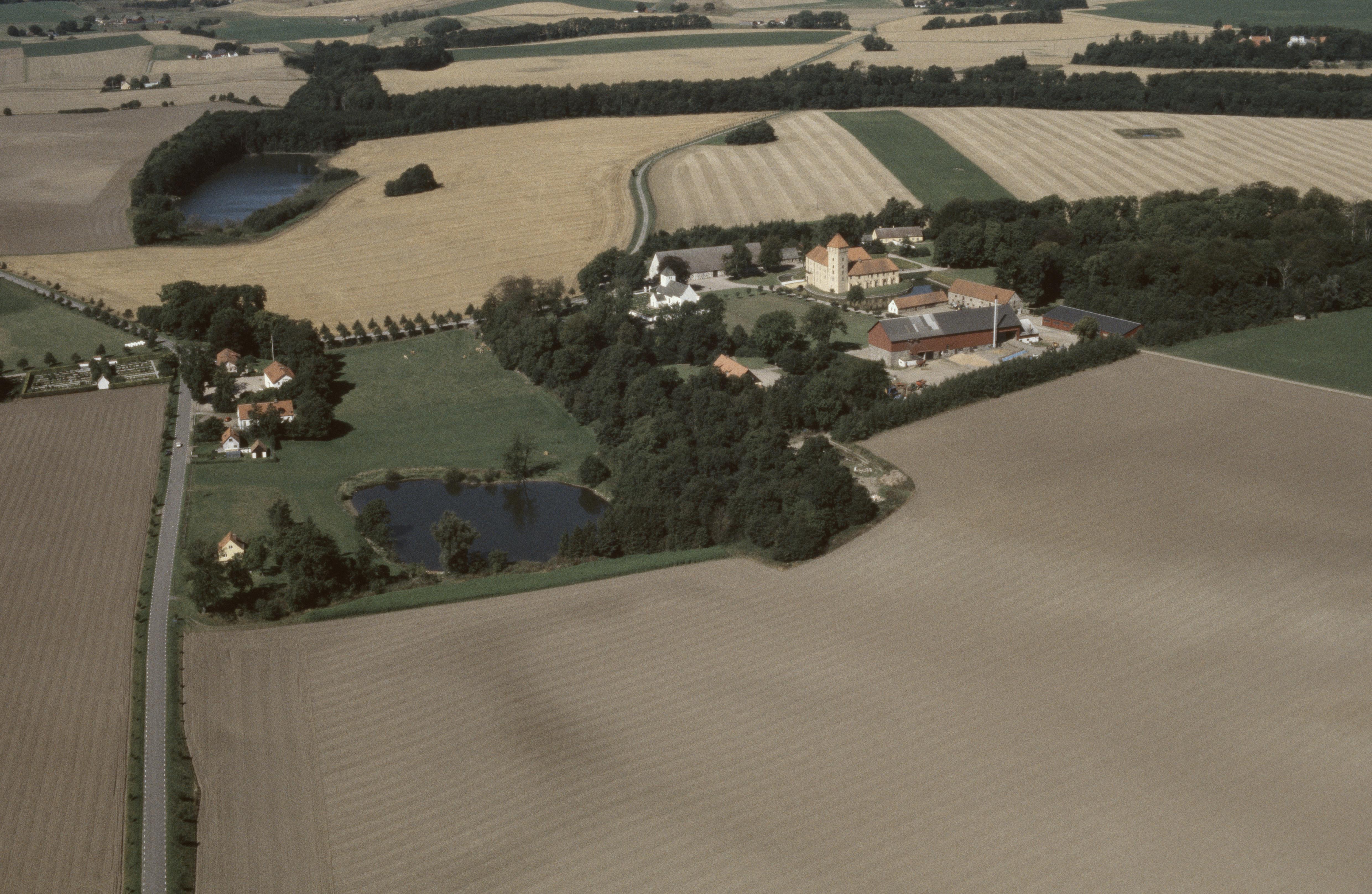 Beskrivning: Tosterups kyrka och Tosterups slott. Bilden är tagen mot (väderstreck): NNV