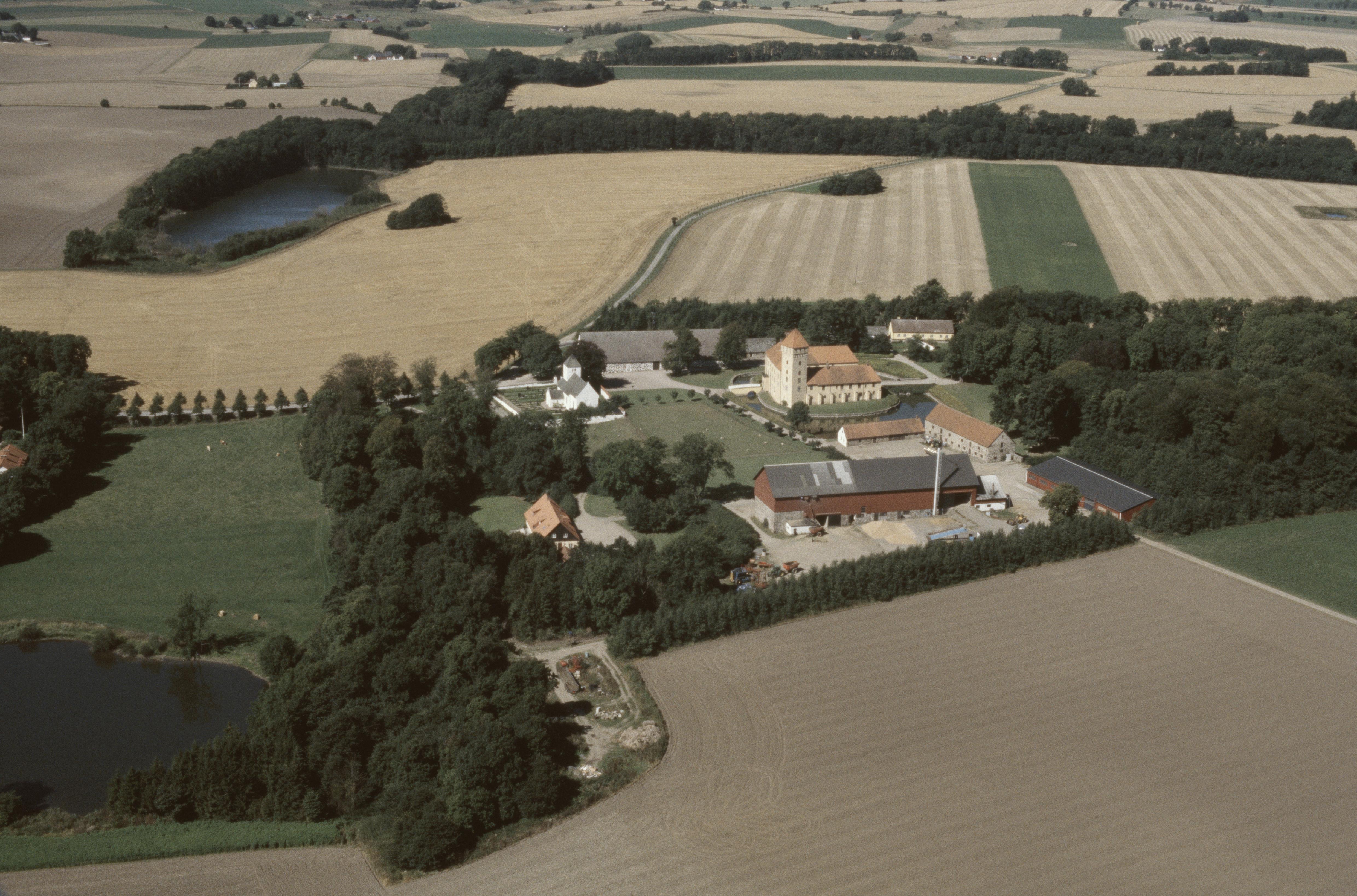 Beskrivning: Tosterups kyrka och Tosterups slott. Bilden är tagen mot (väderstreck): NV