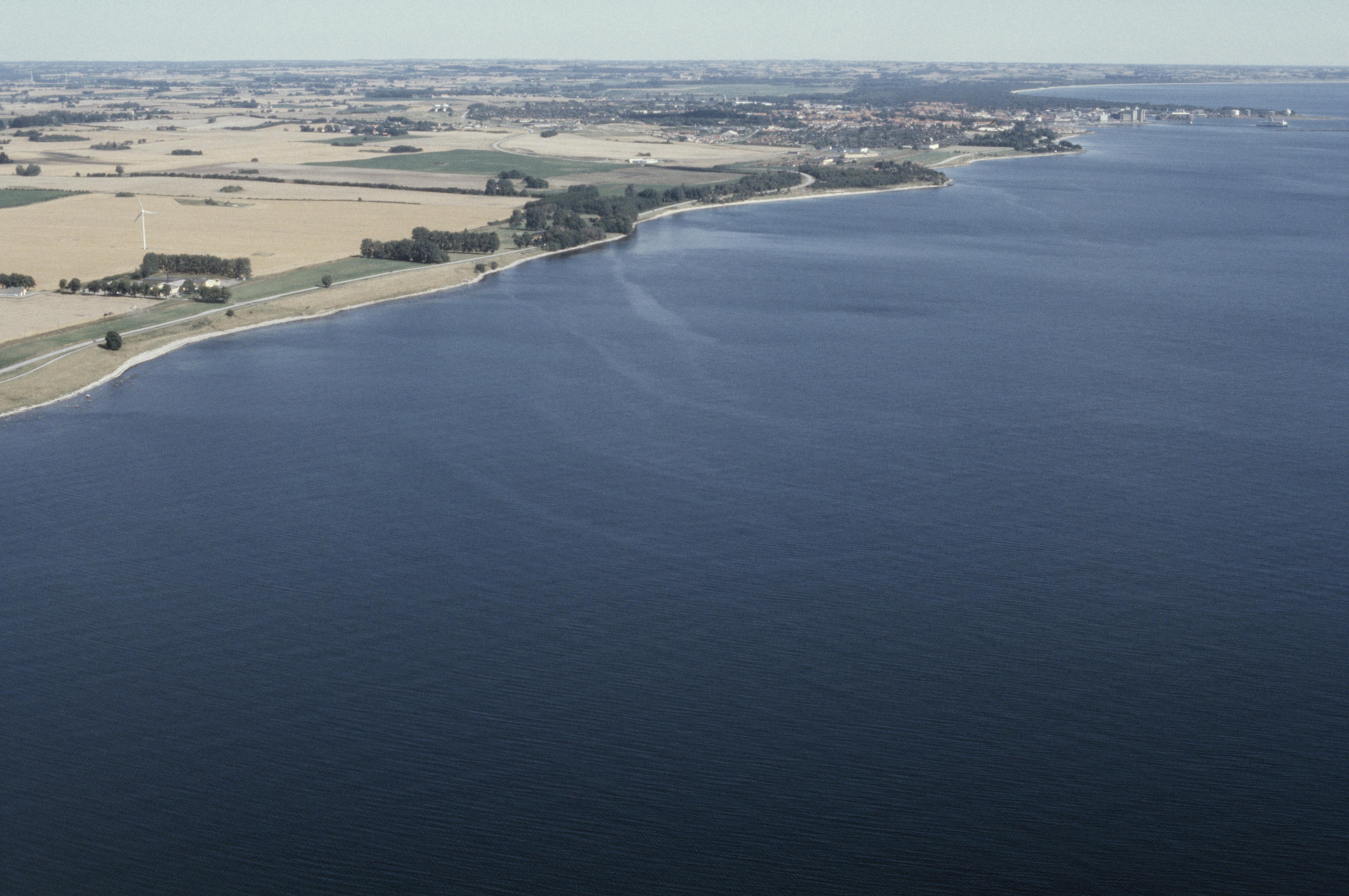 Beskrivning: Vilhelmsborg, öster om Svarte by. Staden Ystad i bildens övre del. Hög RAÄnr Bjäresjö 60:1 m.fl. vid vindkraftsmast uppe till vänster. Bilden är tagen mot (väderstreck): ONO