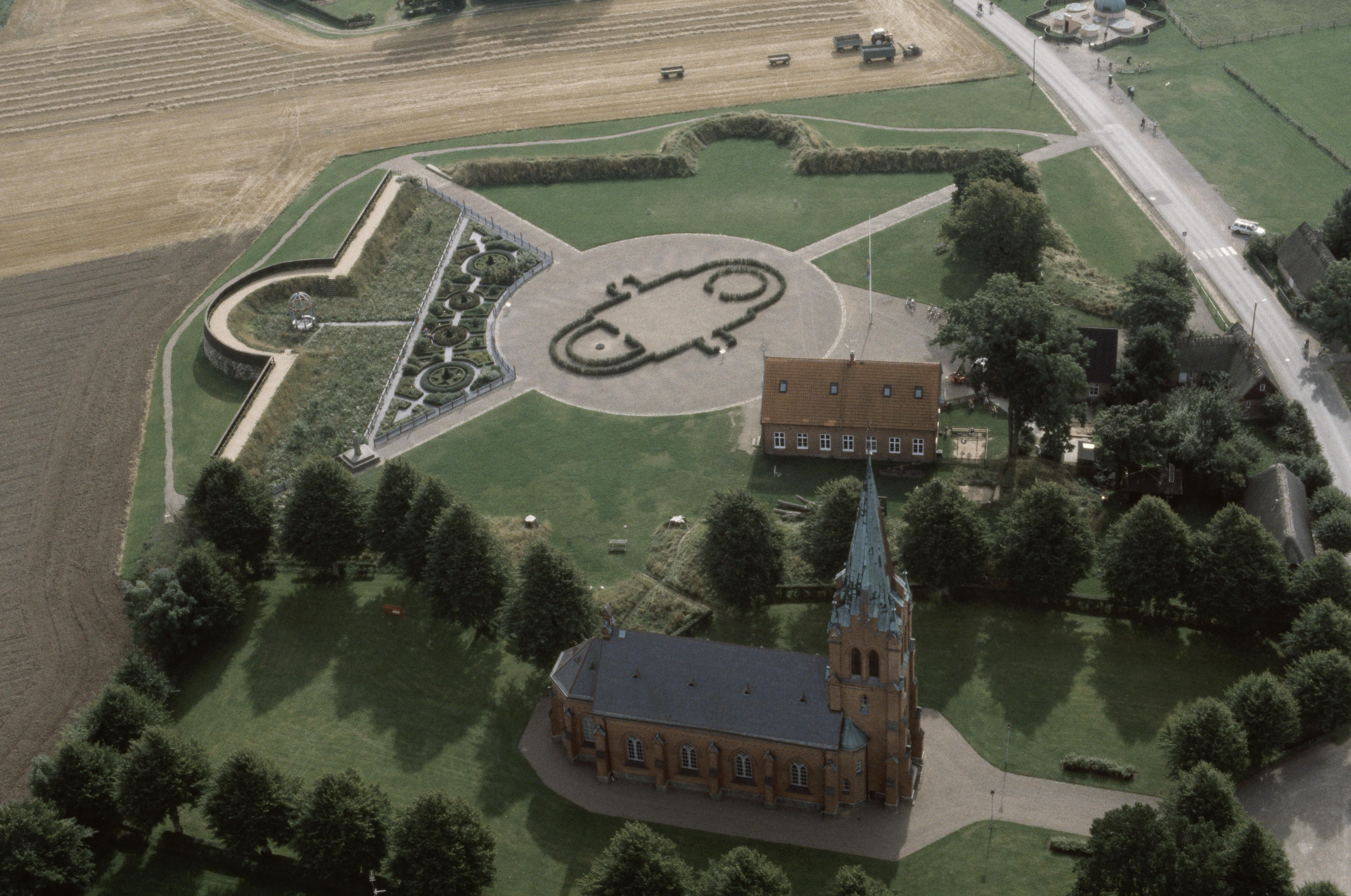 Beskrivning: Sankt Ibbs nya kyrka. Ruiner efter Tycho Brahes slott Uranienborg och observatorium Stjärneborg RAÄnr Sankt Ibb 29:1. Bilden är tagen mot (väderstreck): SO