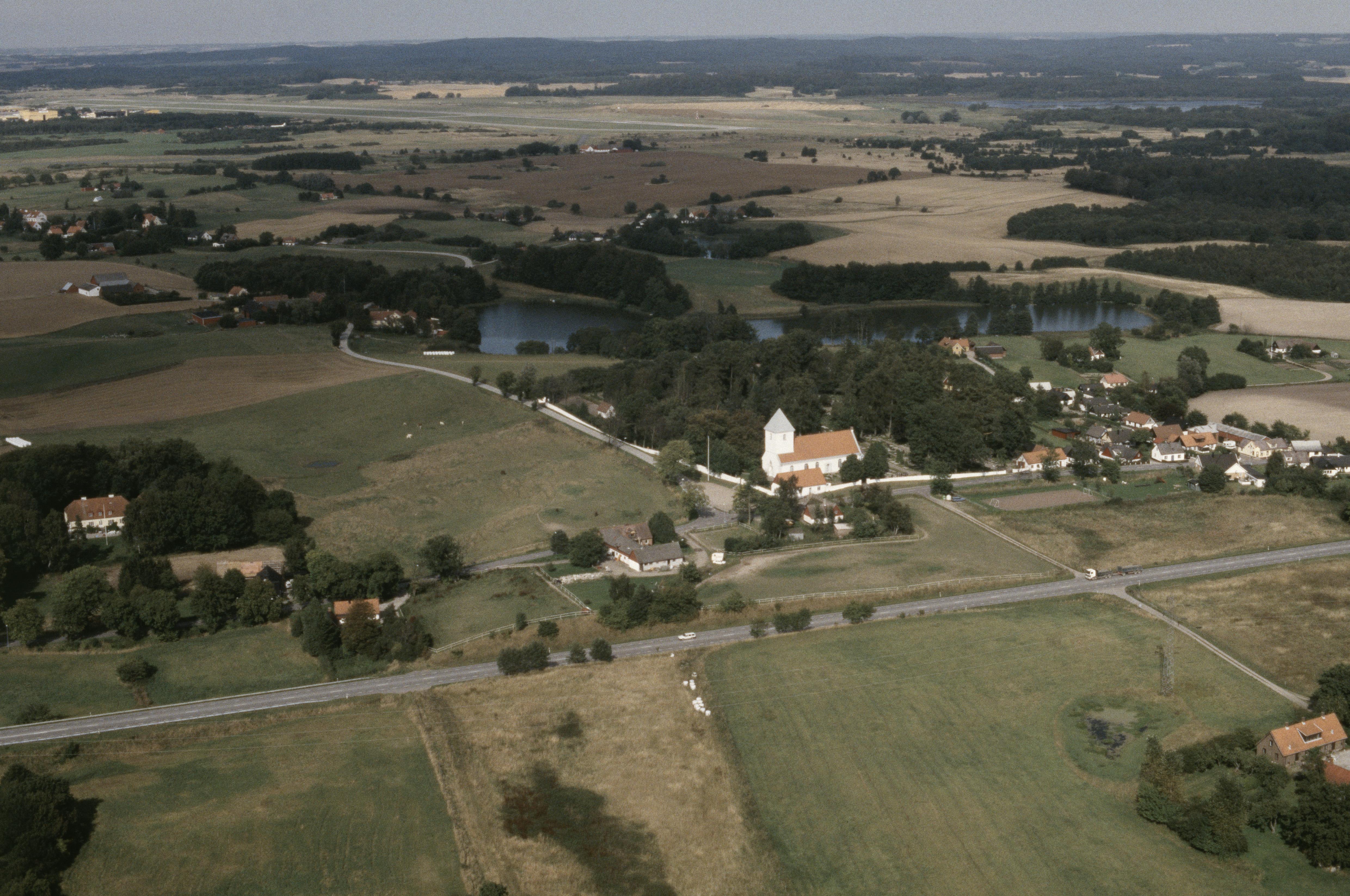 Beskrivning: Börringe kyrka vid Nötesjön. Bilden är tagen mot (väderstreck): NNO