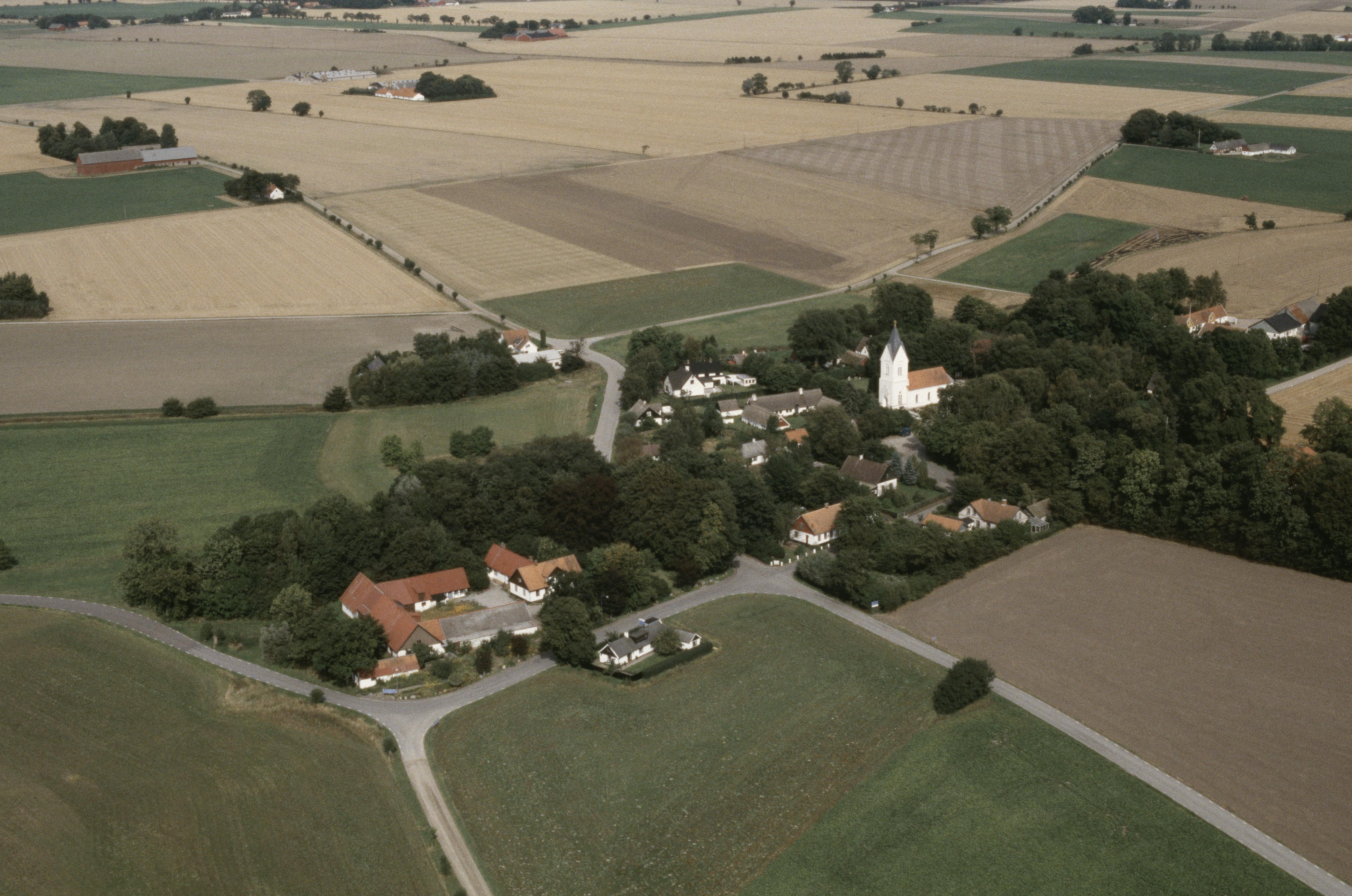 Beskrivning: Äspö kyrka och kyrkby. Bilden är tagen mot (väderstreck): NO