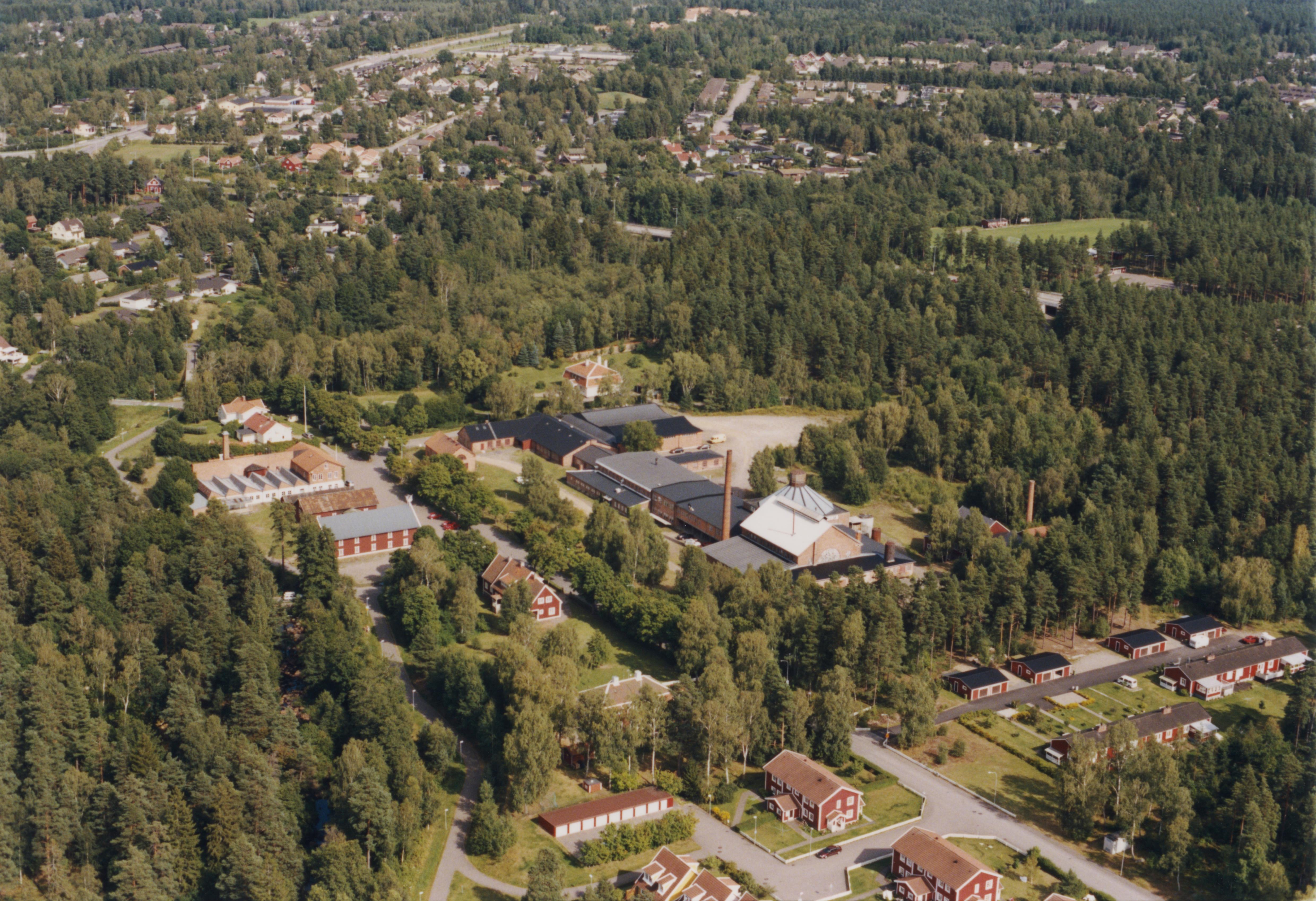 Beskrivning: Pukebergs bruk / Pukebergs glasbruk RAÄnr Madesjö 196:1 vid Sankt Sigfridsån som markerar gränsen mellan socknen Madesjö och Nybro. Nybro tätort i bildens övre del. Bilden är tagen mot (väderstreck): Ö
