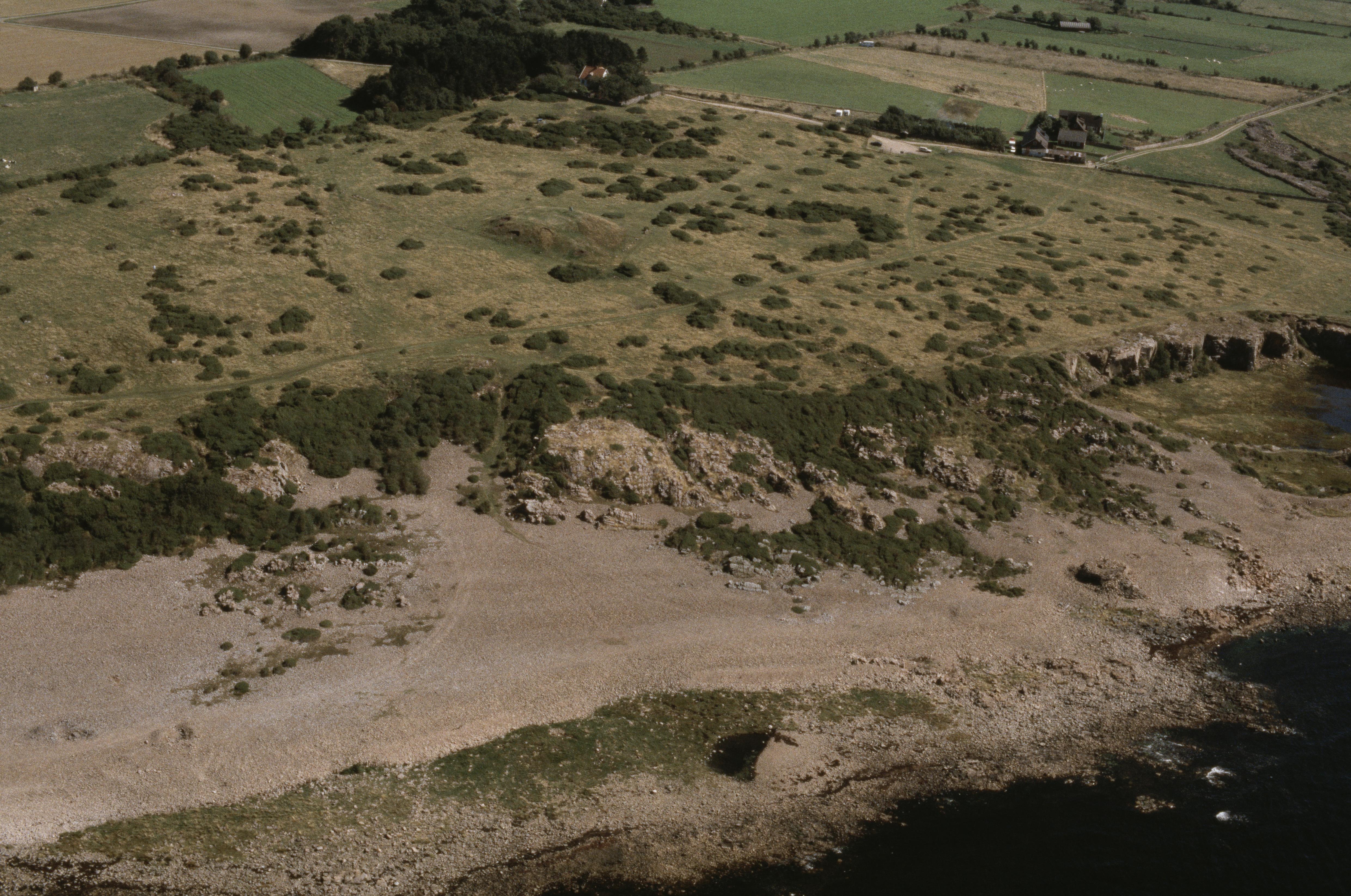 Beskrivning: Klapperstensgravfält / röse vid Olastorp - Ingelstorp på Bjärehalvön, Gröthögarna RAÄnr Hov 38:1. Bilden är tagen mot (väderstreck): S
