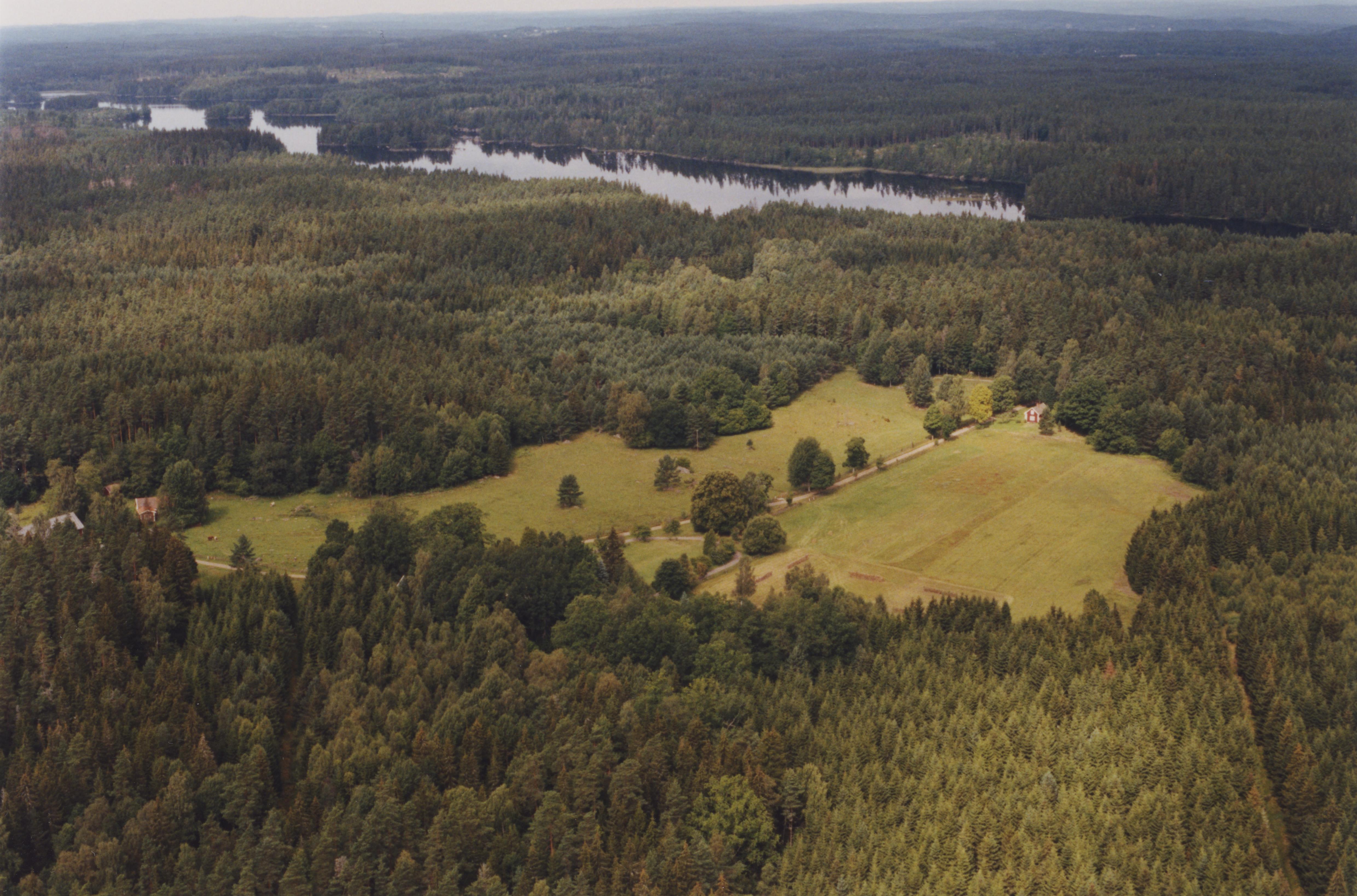 Beskrivning: Kantebo gård. I bildens övre del sjön Moren. Bilden är tagen mot (väderstreck): NV