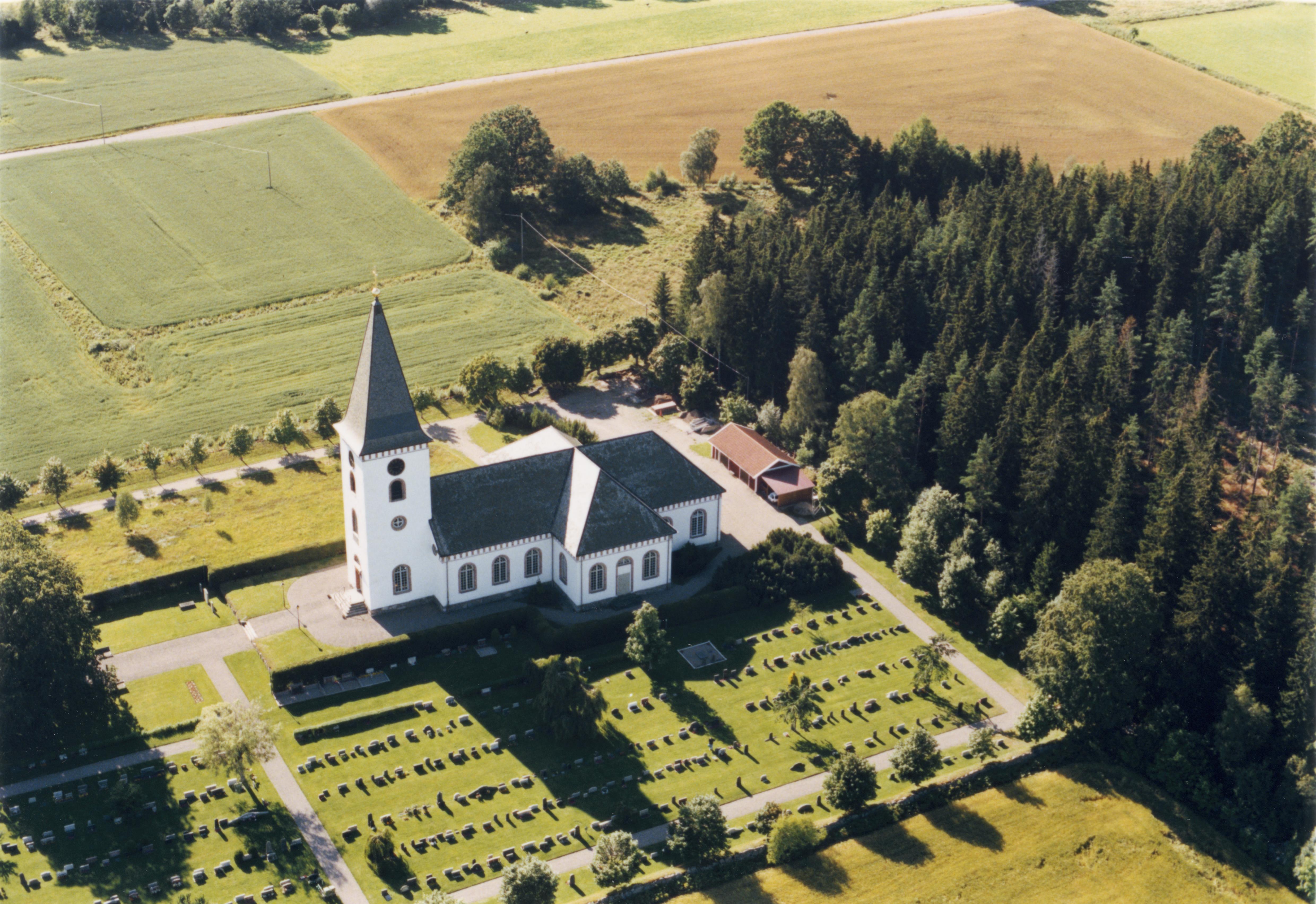 Beskrivning: Hemmesjö kyrka (Hemmesjö nya kyrka) vid fossil åker RAÄnr Hemmesjö 99:1. Bilden är tagen mot (väderstreck): V