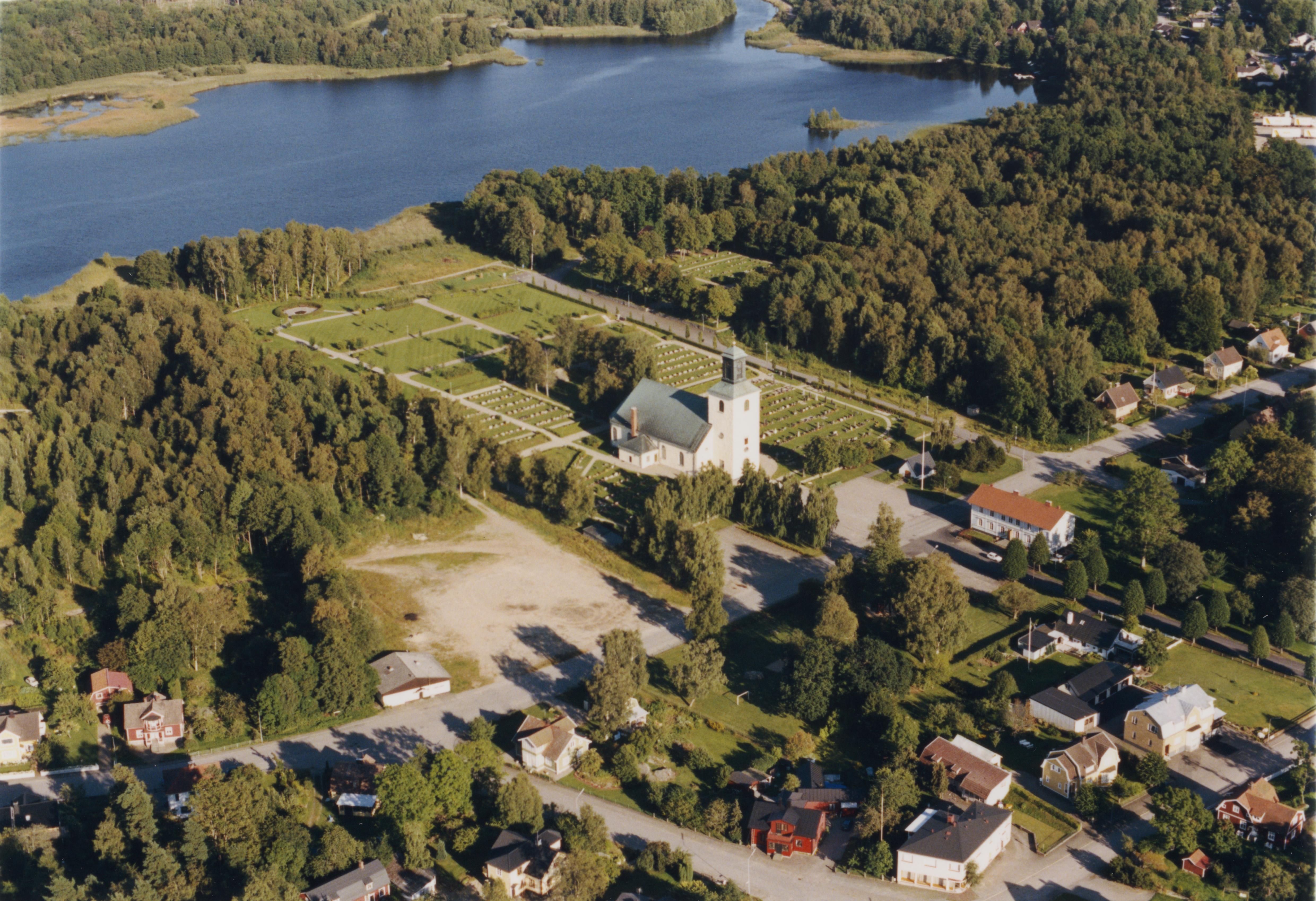 Beskrivning: Almundsryds kyrka (skrivs även Almunderyd och Älmeundsryd) i tätorten Ryd vid Mörrumsån. Mellan kyrkan och ån boplats RAÄnr Almundsryd 160:1. Bilden är tagen mot (väderstreck): SO
