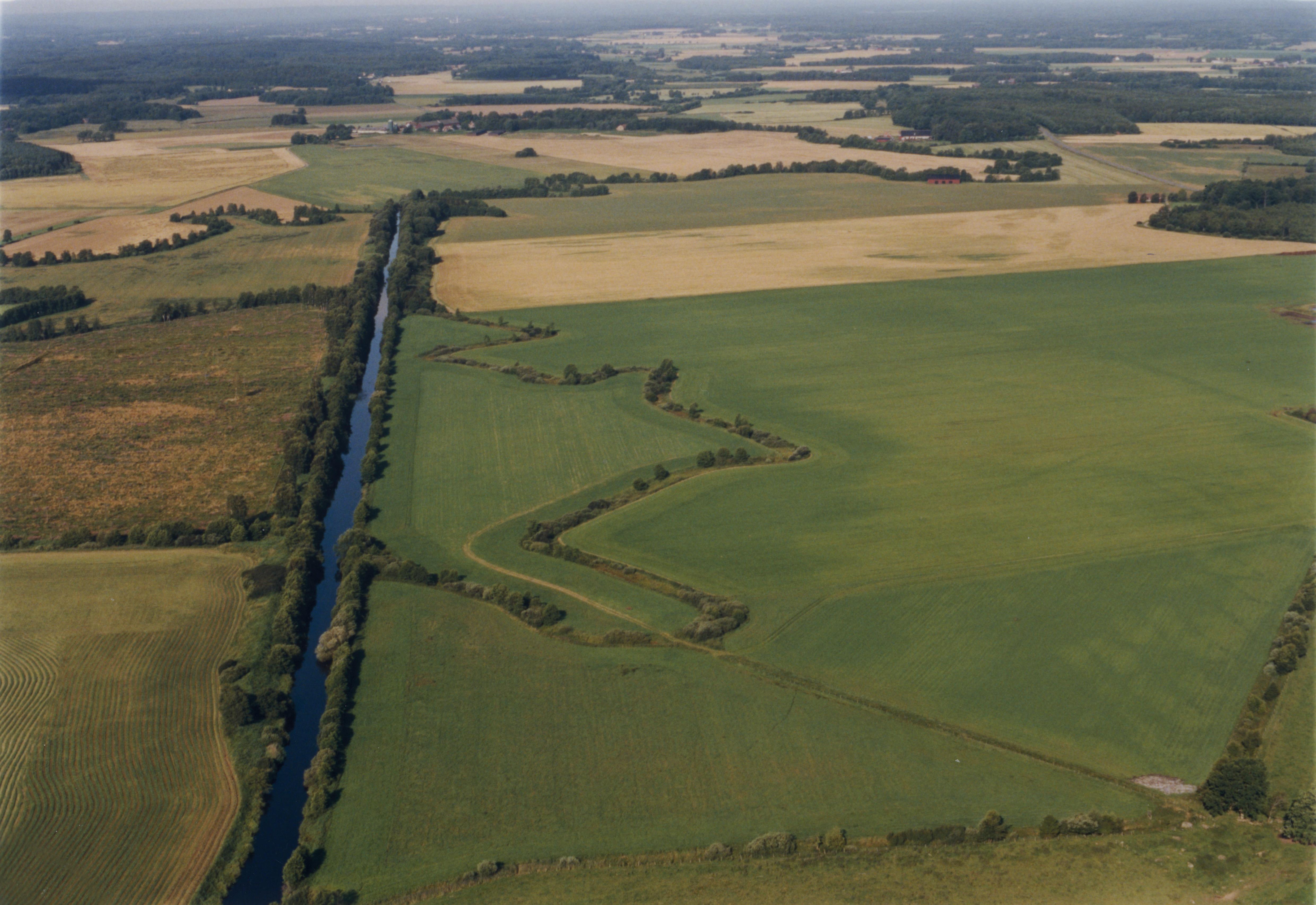 Beskrivning: Almaån på gränsen mellan socknen Gumlösa och Gryt (till höger) öster om Sinclairsholms slott och Gumlösa by. Bilden är tagen mot (väderstreck): V