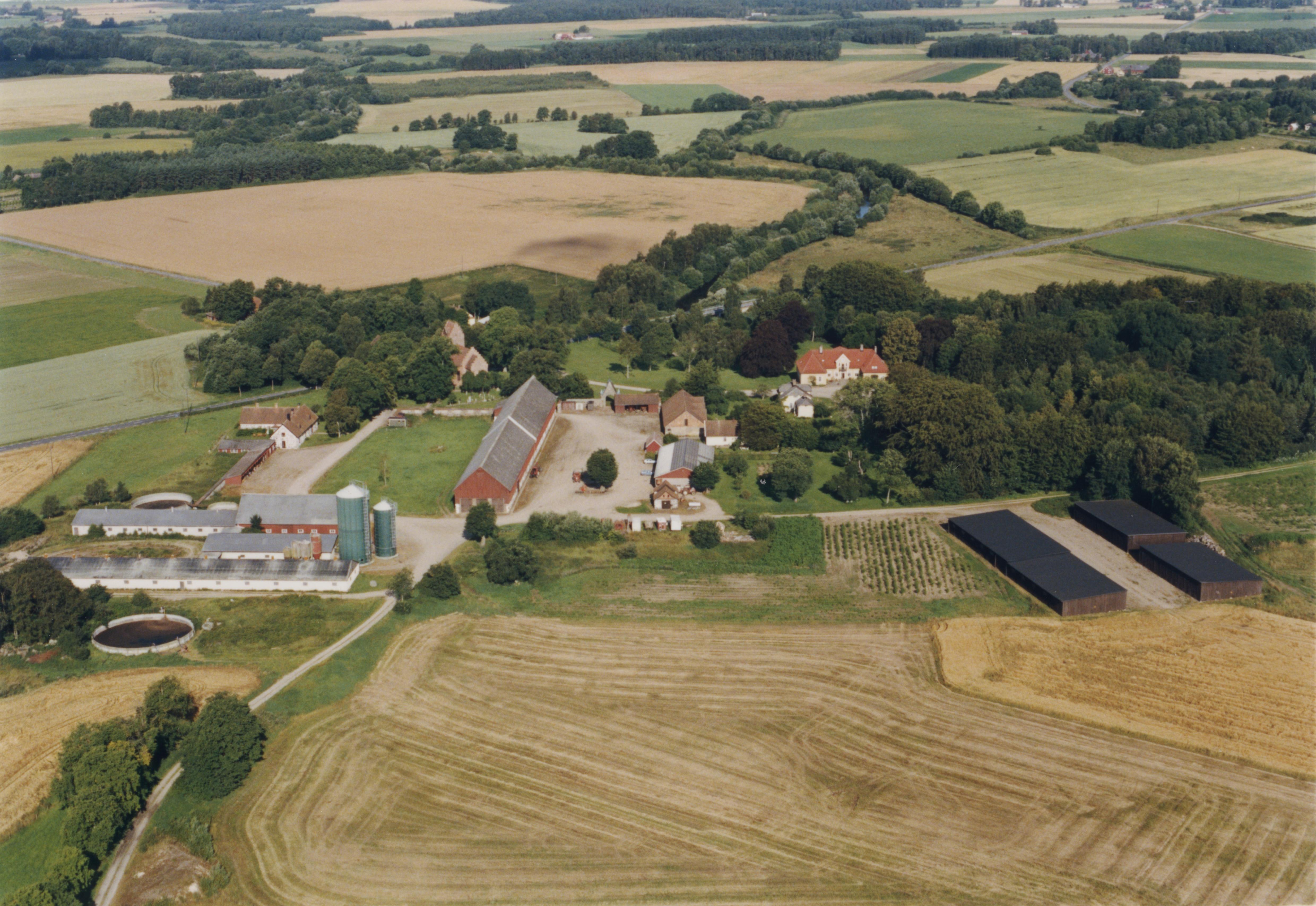 Beskrivning: Gumlösa kyrka och Sinclairsholms slott vid Almaån. Bilden är tagen mot (väderstreck): NV