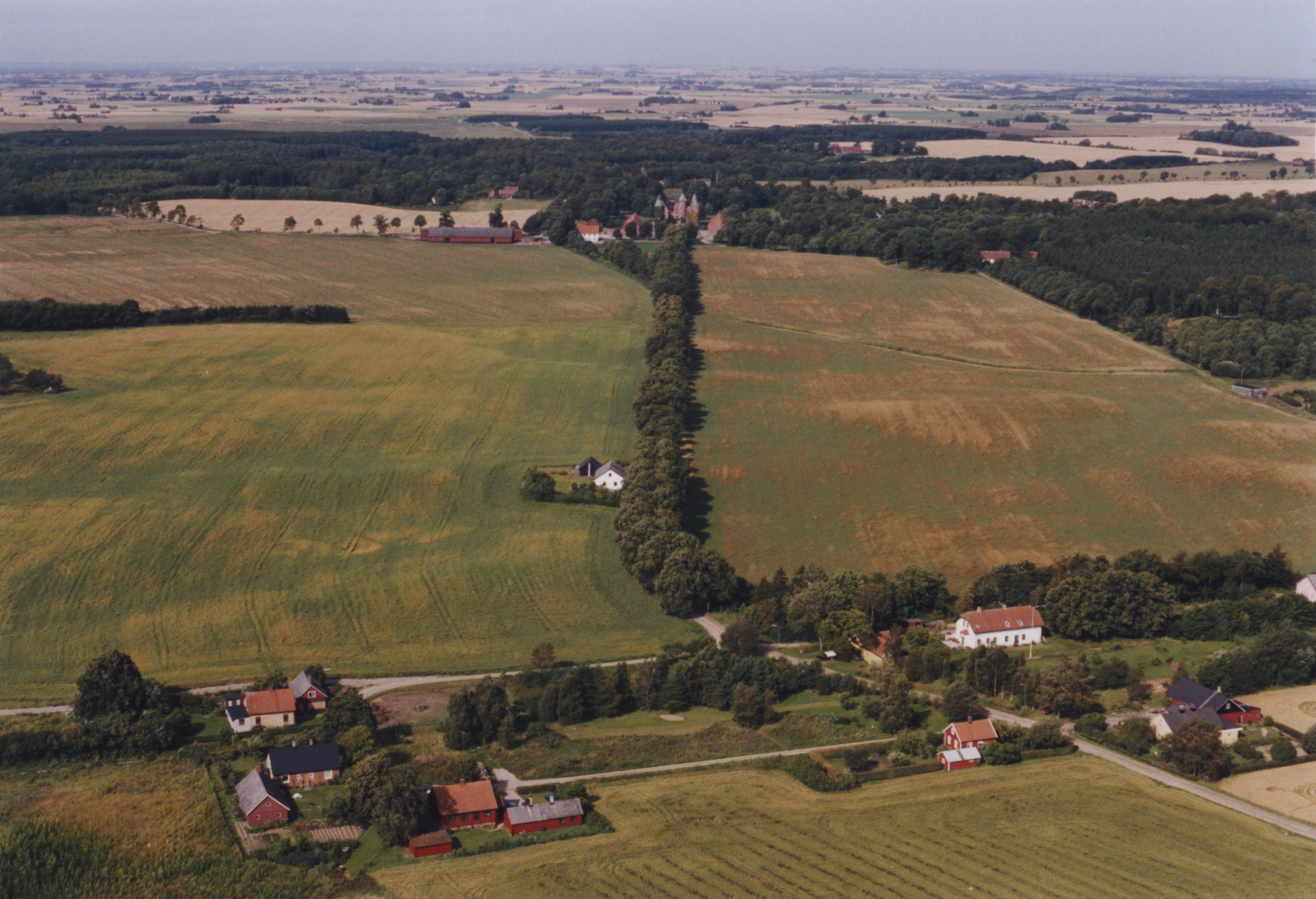 Beskrivning: Anmärkning (övrig): Bilden saknar negativ. Den är skannad år 2019 från papperskopia (c:a 10x15). Om bilden ska användas måste den skärpas och kollas noga för damm o.dyl. Riksintresse-nr/namn: M31a - Trolleholm. Socken: delen i Torrlösa. Motivering: Vidsträckt slottslandskap och odlingslandskap kring Trolleholms slott av medeltida ursprung som under 1800-talets slut omdanats i en kontinental- och medeltidsinspirerad blandstil. - Uttryck för riksintresset: Öppet och allékantat odlingslandskap som präglats av slottets stordrift. Det över den kringliggande slätten dominerande Trolleholms slott med trelängad huvudbyggnad som omdanats av den danske arkitekten F Meldahl, välbevarad ekonomibebyggelse av C G Brunius, va(…) Texten i detta fält har förkortats vid migrering till e-arkivet. Se filbilagan extra.xml för fullständig information under note_archivist. Beskrivning: Trolleholms slott. I bildens nedre del Bjärmegården och Horshagsfarm. Bilden är tagen mot (väderstreck): V Fotosyfte: Flygbildsdokumentation