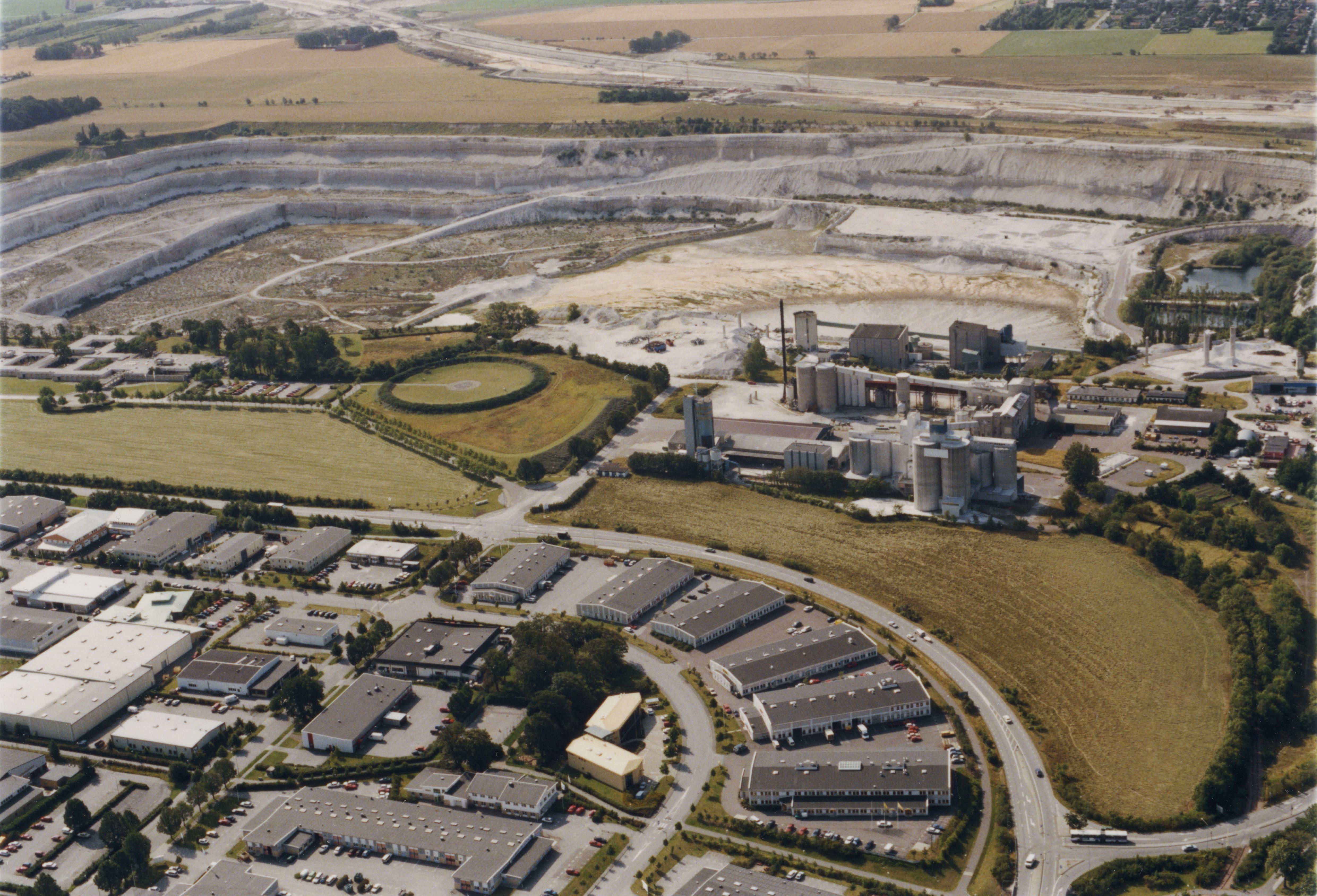 Beskrivning: Öresundsbron. Limhamns kalkbrott vid Sibbarp. Delar av Boplats RAÄnr Malmö 95 under bildens mitt. Bilden är tagen mot (väderstreck): SV