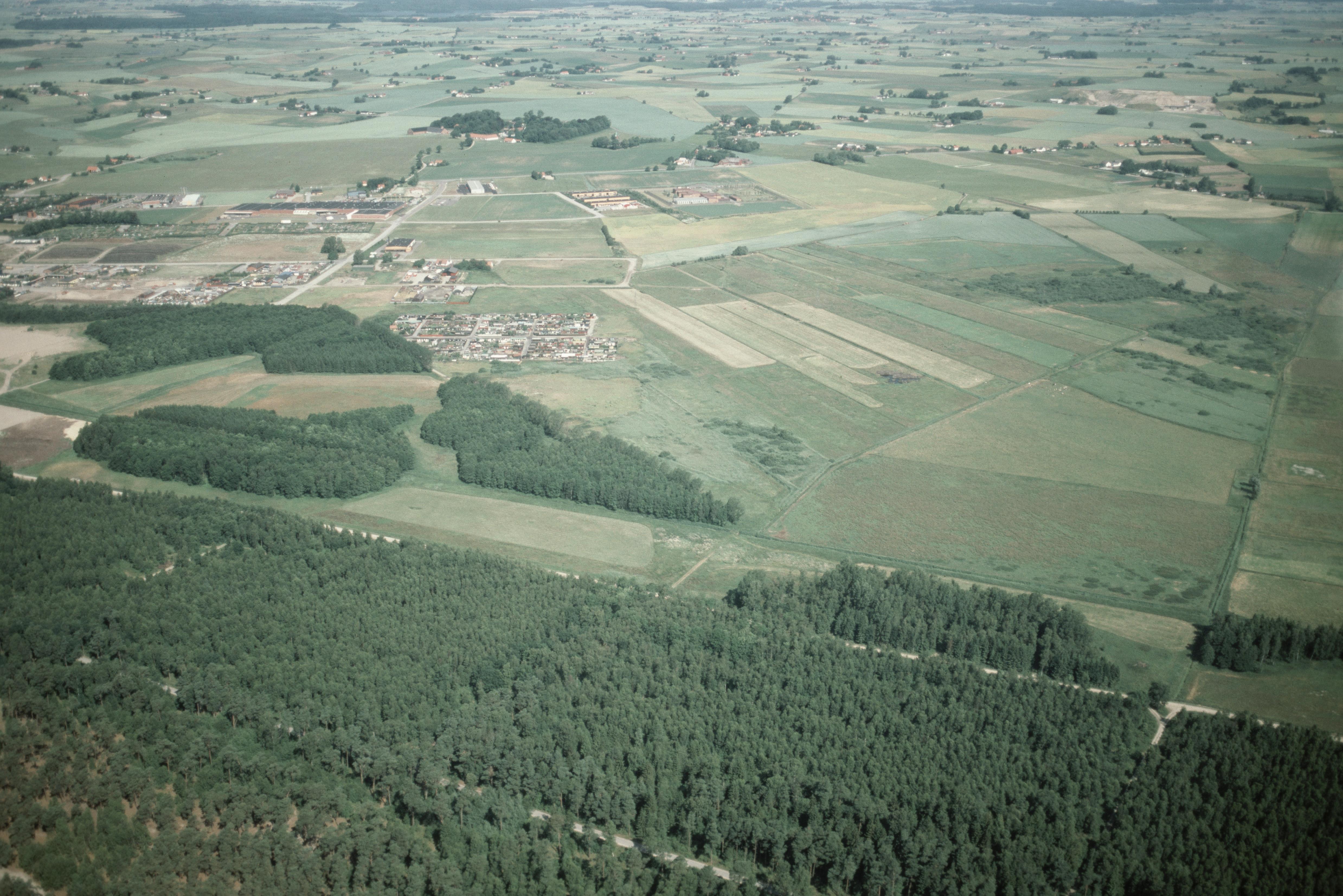 Beskrivning: Öja mosse öster om Ystad och norr om Sandskogen naturreservat. Fyndplats RAÄnr Öja 2:1 vid kolonistugeområdet i bildens mitt. Bilden är tagen mot (väderstreck): N