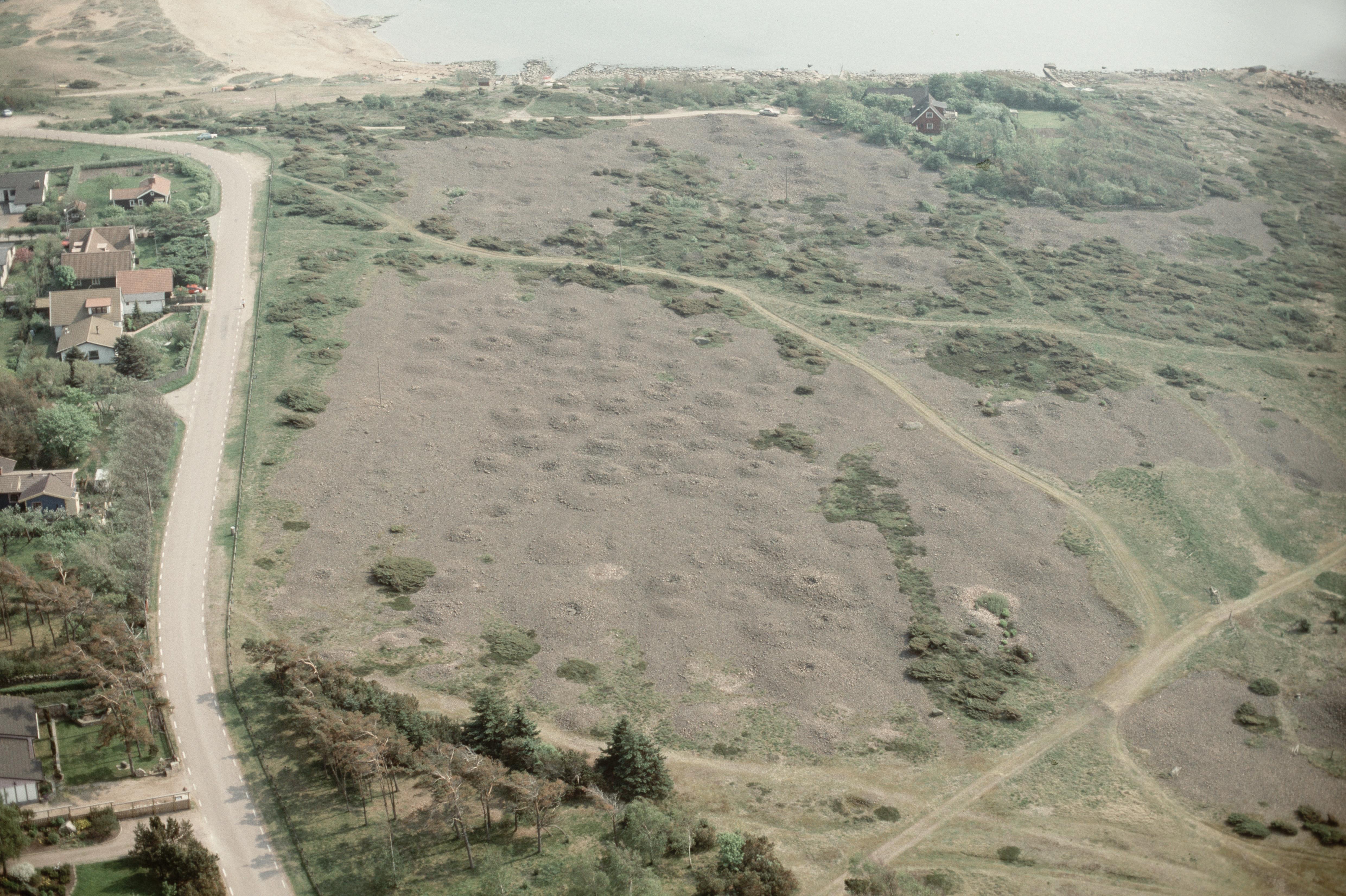 Beskrivning: Påarps tätort. Gravfält "Sänke hög" RAÄnr Trönninge 9:1 vid bildens mitt. Bilden är tagen mot (väderstreck): SV