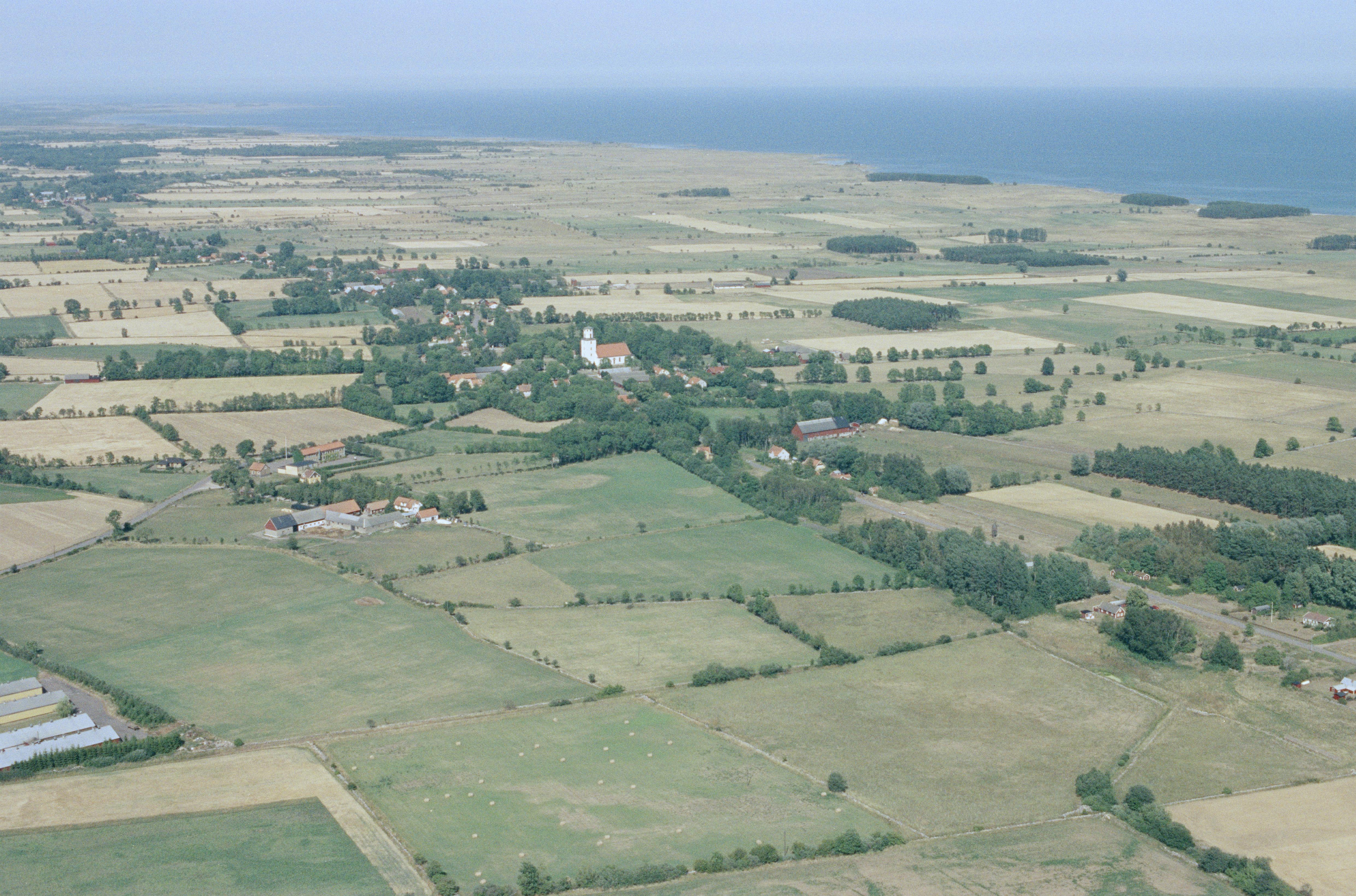 Beskrivning: Runstens kyrka ochkyrkby. Bilden är tagen mot (väderstreck): NO