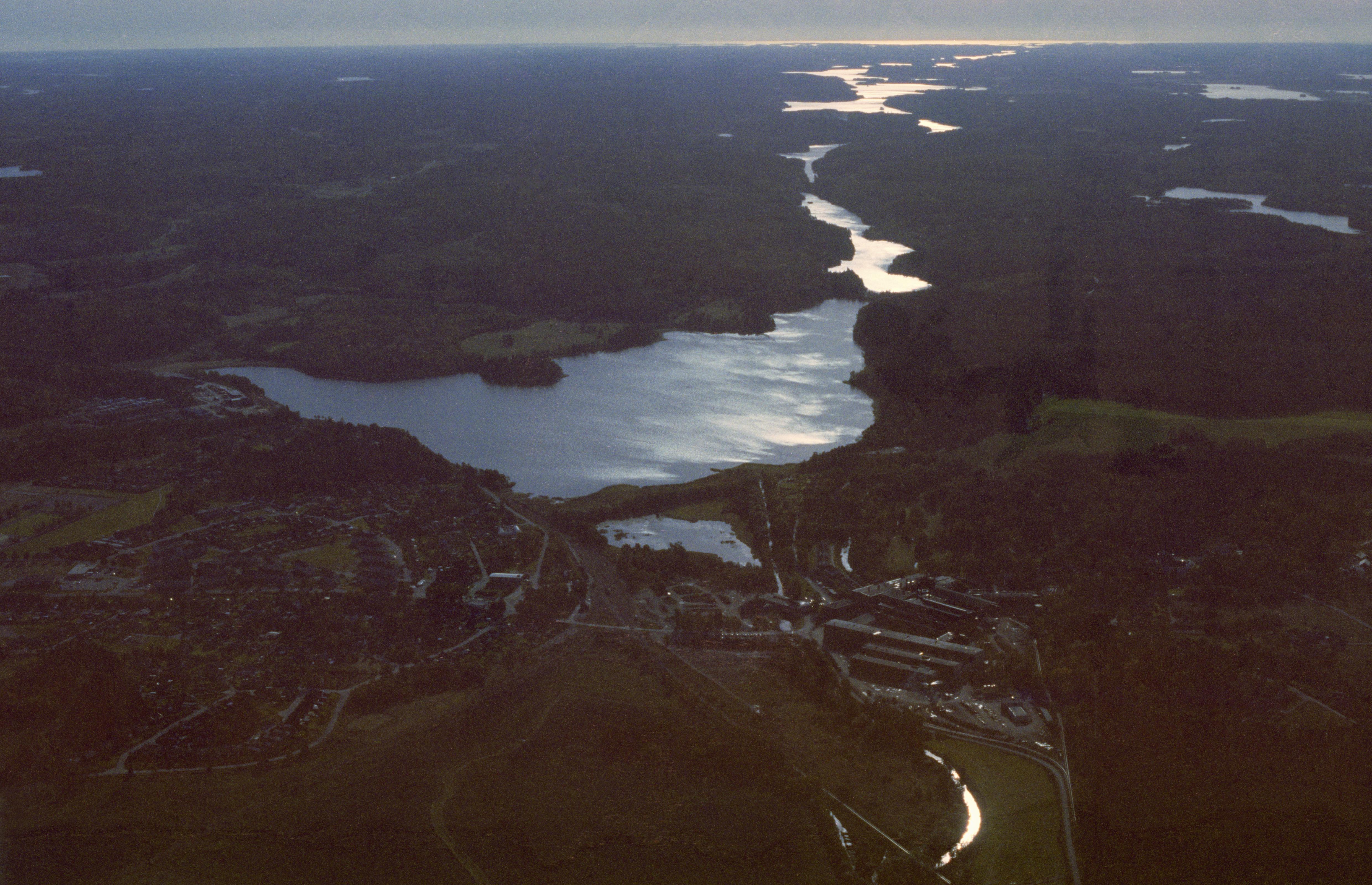Beskrivning: Forsa tätort vid sjön Visnaren. Nedre Marviken, Mellan-Marviken och Övre Marviken i bildens övre del. Bilden är tagen mot (väderstreck): SO
