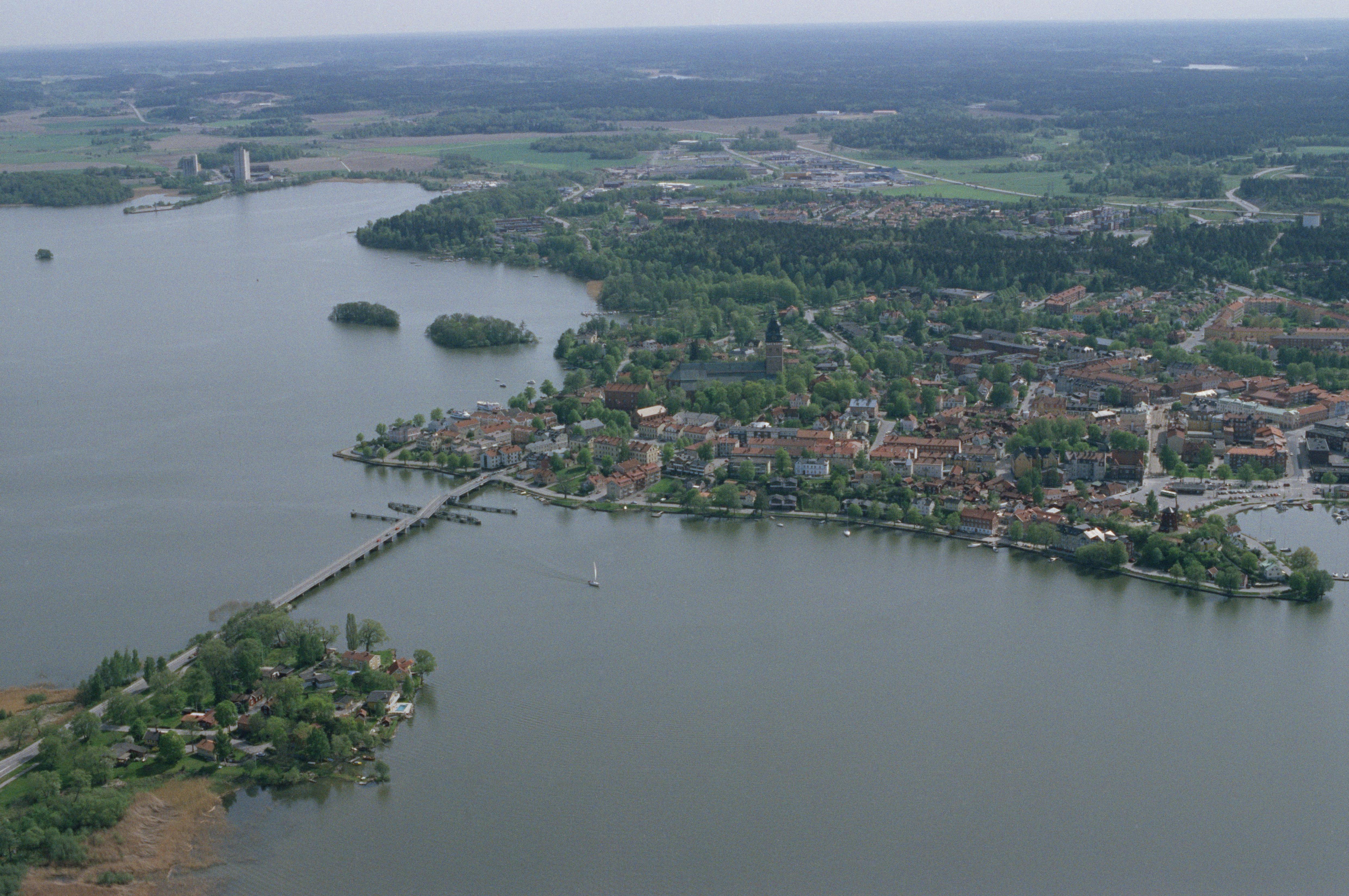 Beskrivning: Strängnäs stad. Strängnäs domkyrka vid bildens mitt. Bilden är tagen mot (väderstreck): SSO